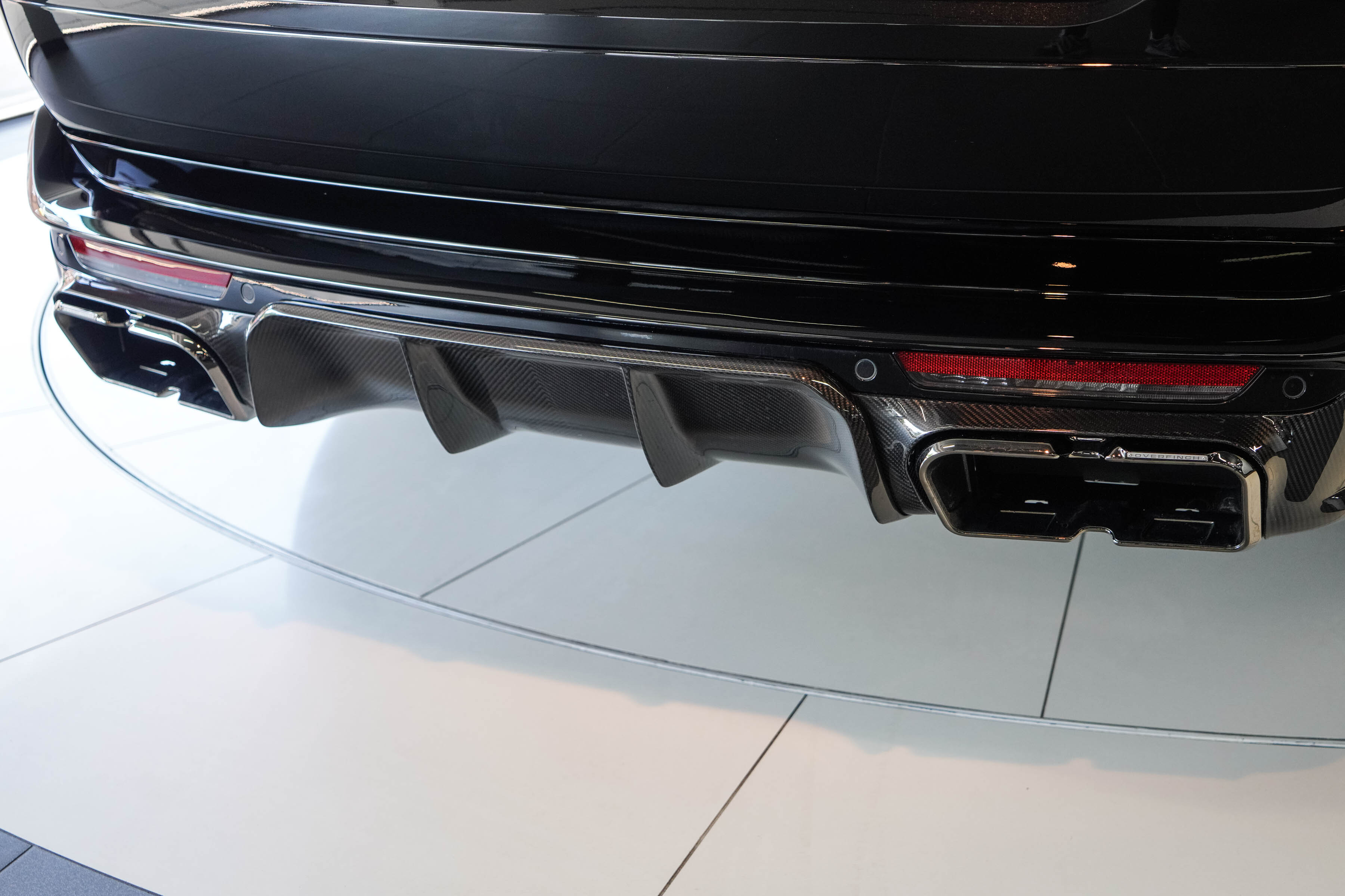 Overfinch Carbon Fibre Body Styling Package Comprising of Front Bumper Eyebrow Set with Visual Carbon Fibre Splitter and Side Wing Set, Integrated Carbon Fibre Bumper Insert, 6 Piece Visual Carbon Fibre Side Skirt Set, Visual Herringbone Carbon Fibre Diffuser with Cast Overfinch Engraved Exhaust Tips, Visual Carbon Fibre Roof Spoiler, Overfinch Signature Rear Light Plinth with Illuminated Blade Badging