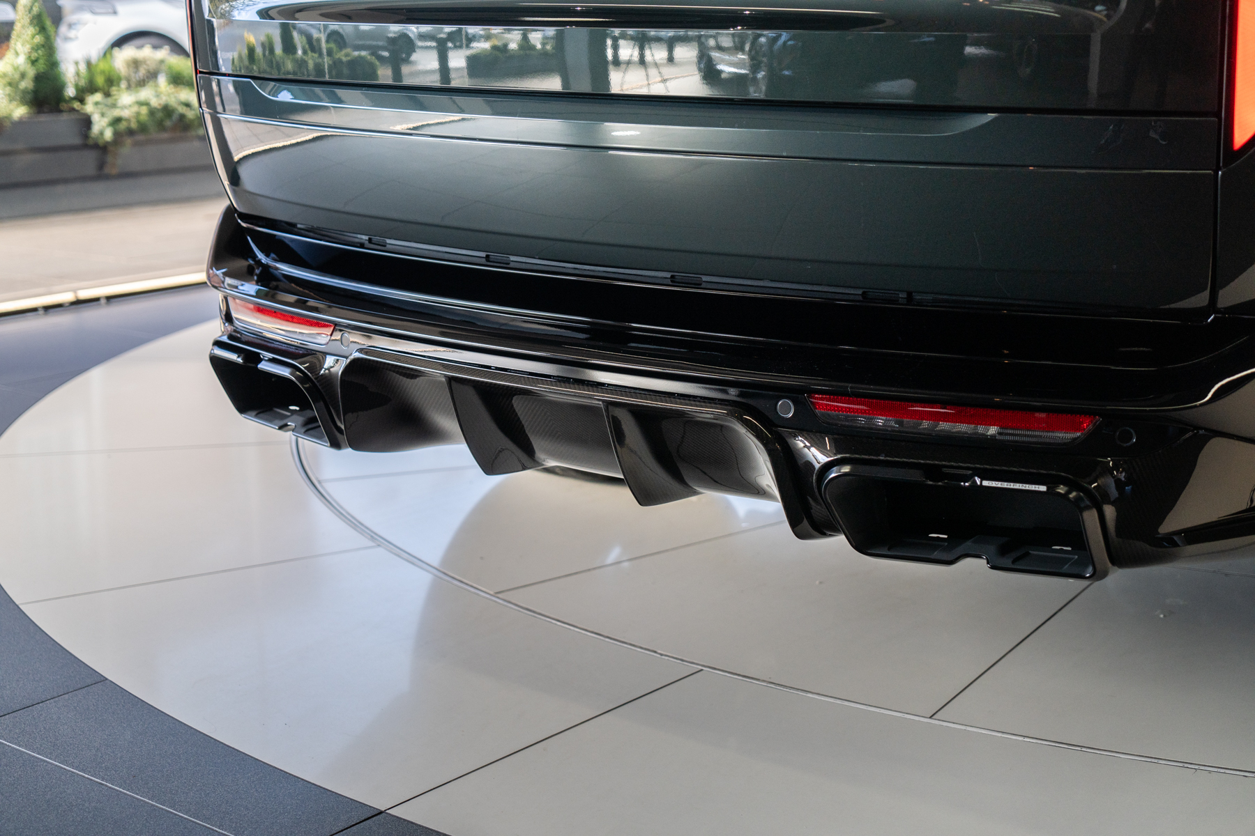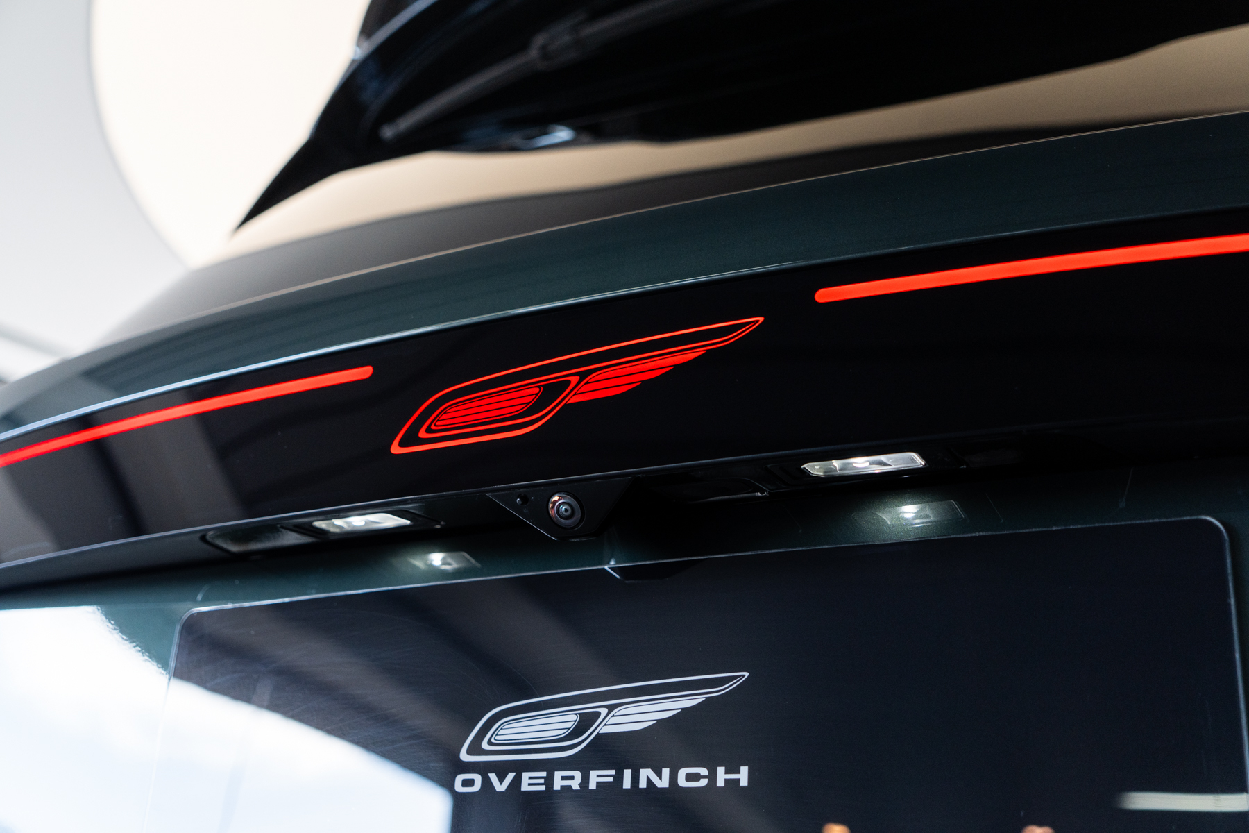 Overfinch Carbon Fibre Body Styling Package Comprising of Front Bumper Eyebrow Set with Visual Carbon Fibre Splitter and Side Wing Set, Integrated Carbon Fibre Bumper Insert, 6 Piece Visual Carbon Fibre Side Skirt Set, Visual Herringbone Carbon Fibre Diffuser with Cast Overfinch Engraved Exhaust Tips, Visual Carbon Fibre Roof Spoiler and Signature Rear Light Plinth with Illuminated Blade Badging