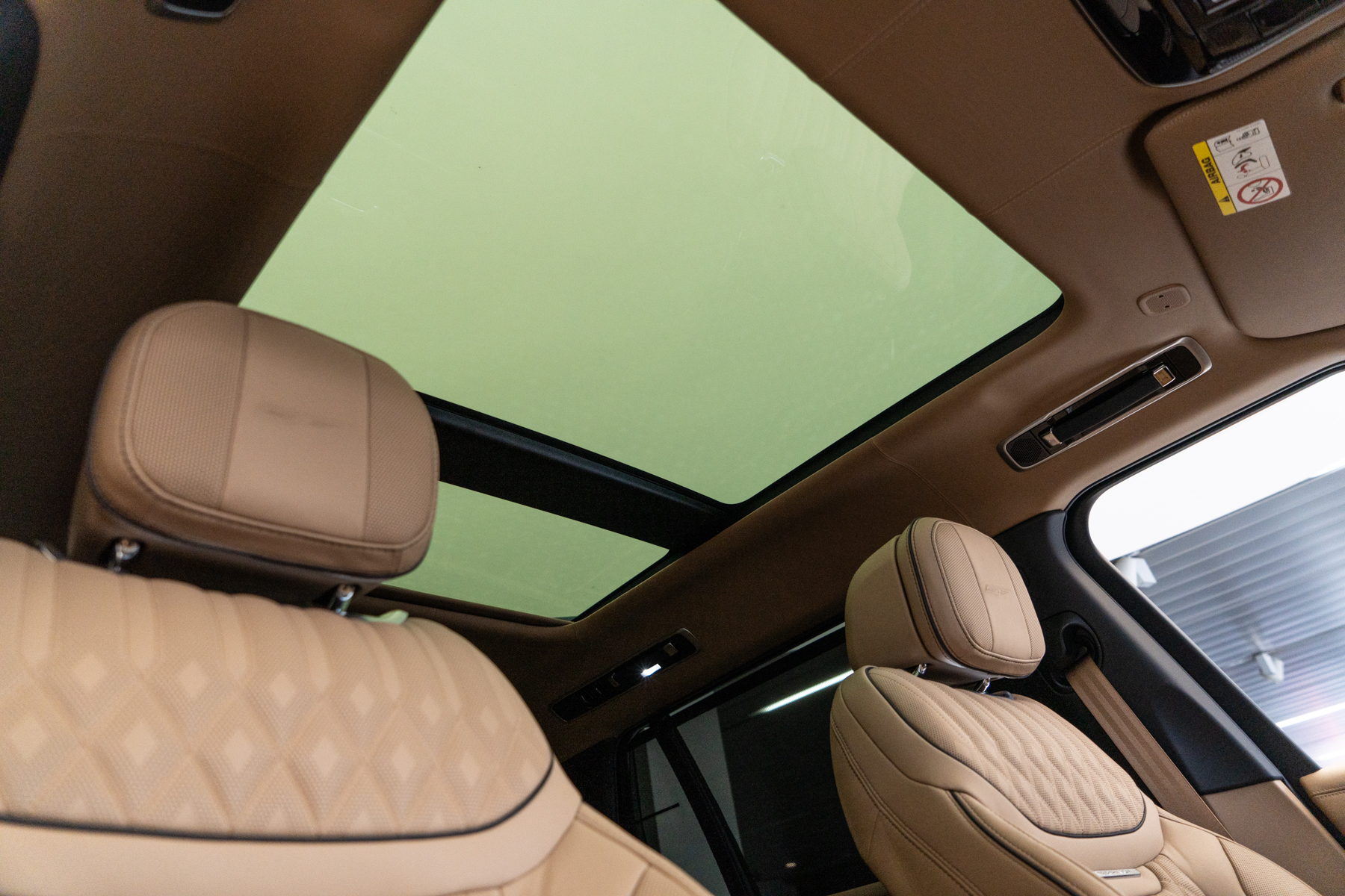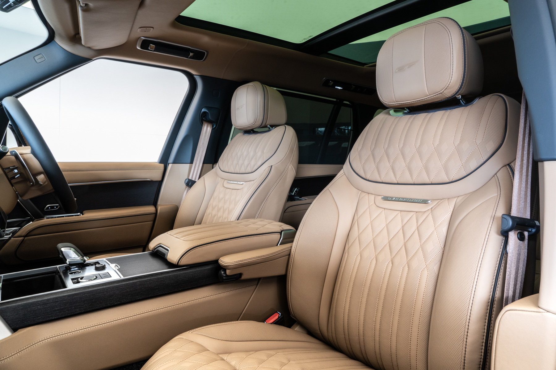 Overfinch Aurora diamond Quilted Seats, Dashboard, Door Cards, Steering Wheel and Gear Selector all Trimmed in Bridge of Weir Premium Caraway Leather, Perforated Caraway Centres, Contrast Ebony Micropiping and Stitching