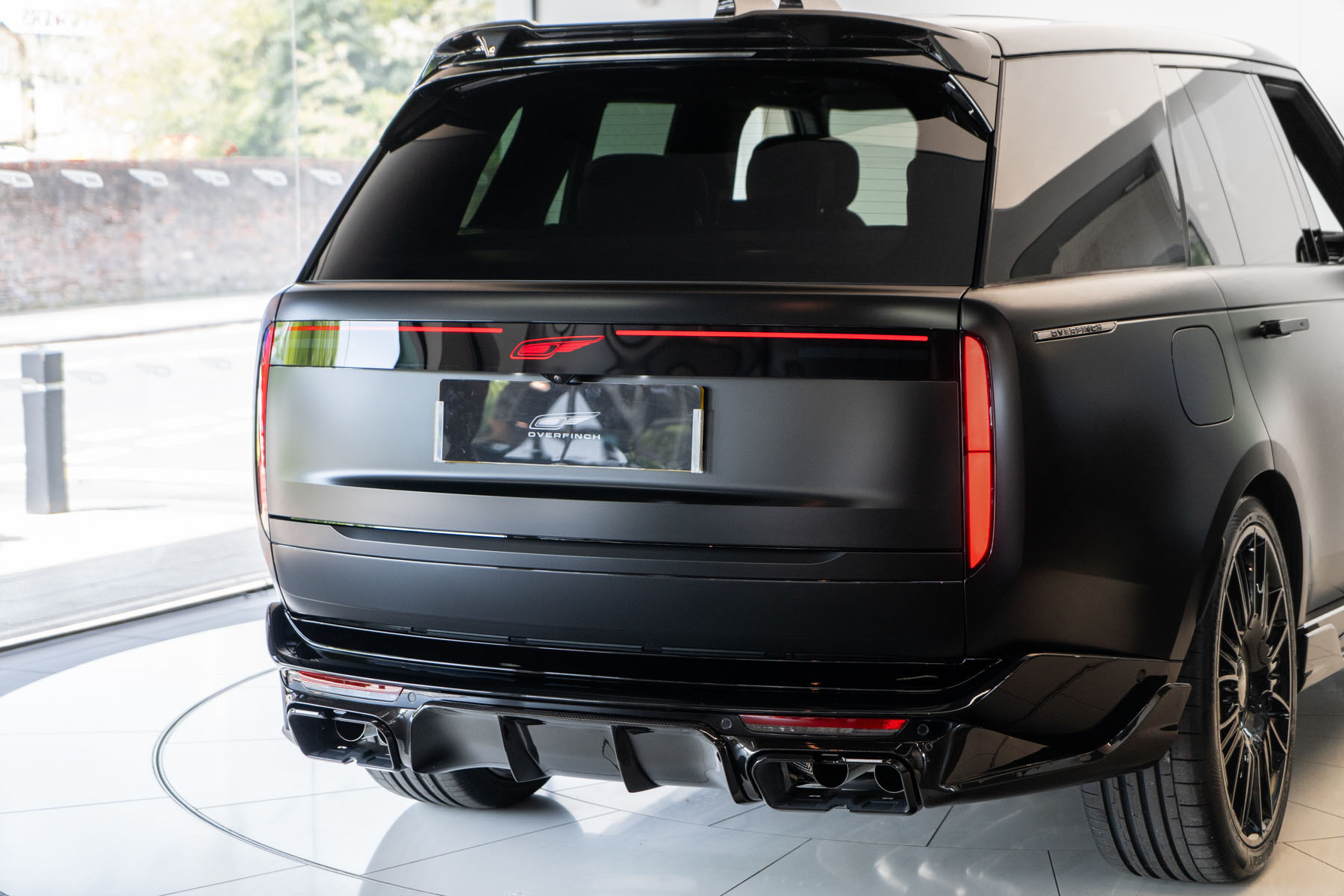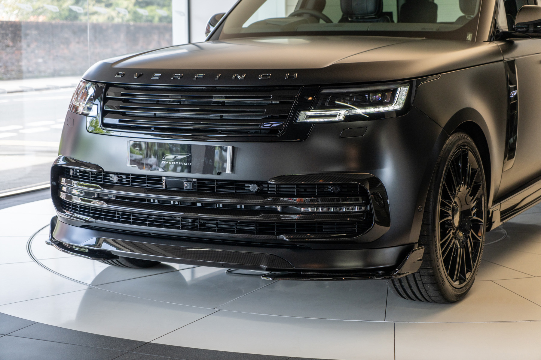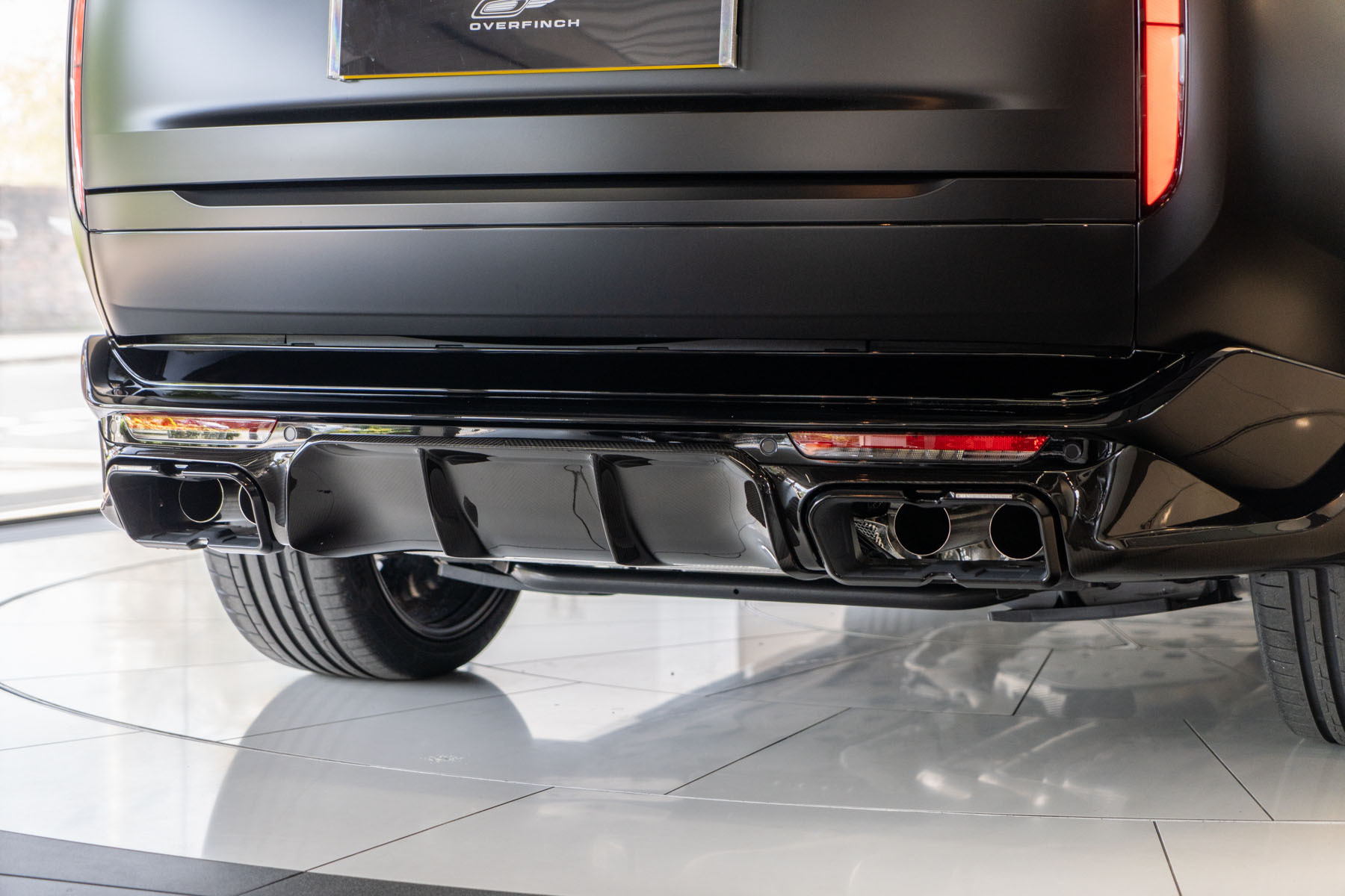 Overfinch Carbon Fibre Body Styling Package Comprising of Front Bumper Eyebrow Set with Visual Carbon Fibre Splitter and Side Wing Set, Integrated Carbon Fibre Bumper Insert, 6 Piece Visual Carbon Fibre Side Skirt Set, Visual Herringbone Carbon Fibre Diffuser with Cast Overfinch Engraved Exhaust Tips, Visual Carbon Fibre Roof Spoiler and Signature Rear Light Plinth with Illuminated Blade Badging