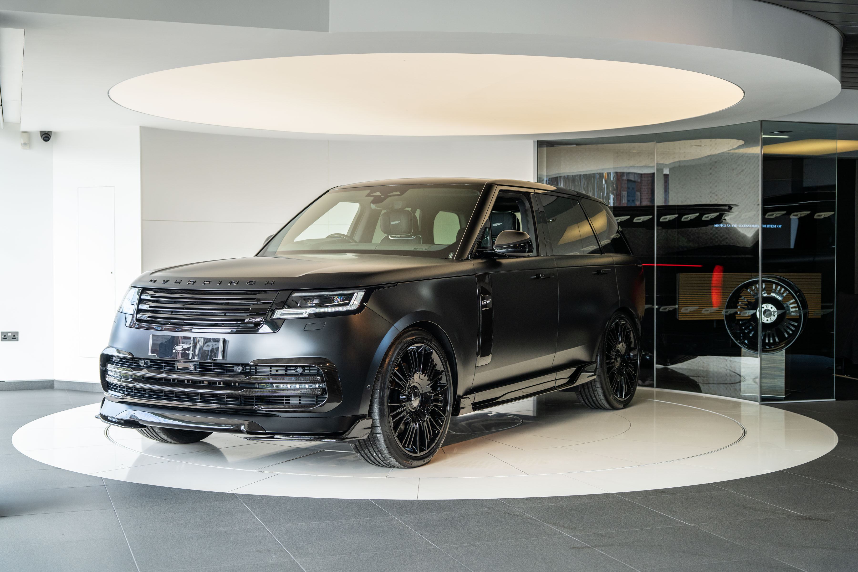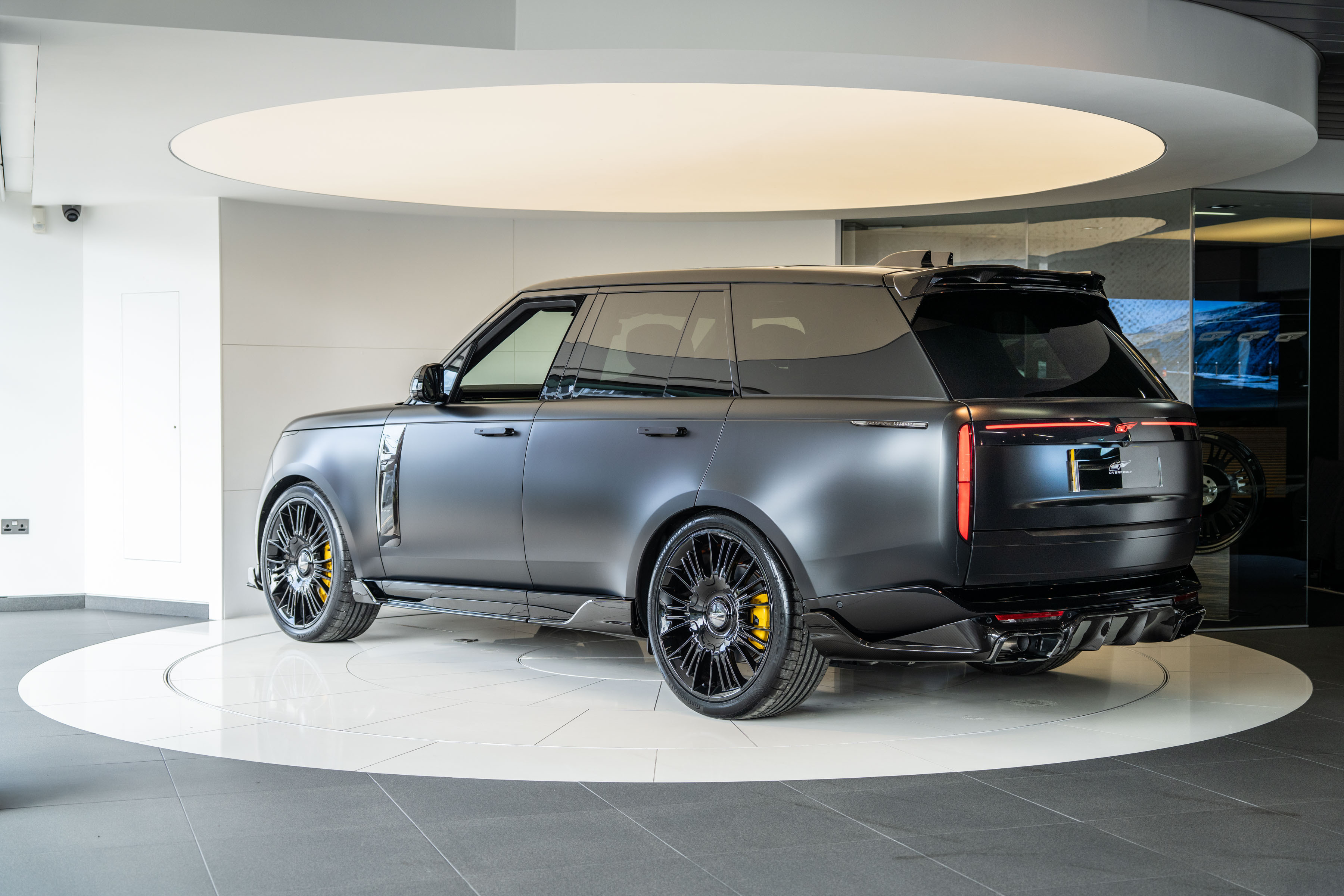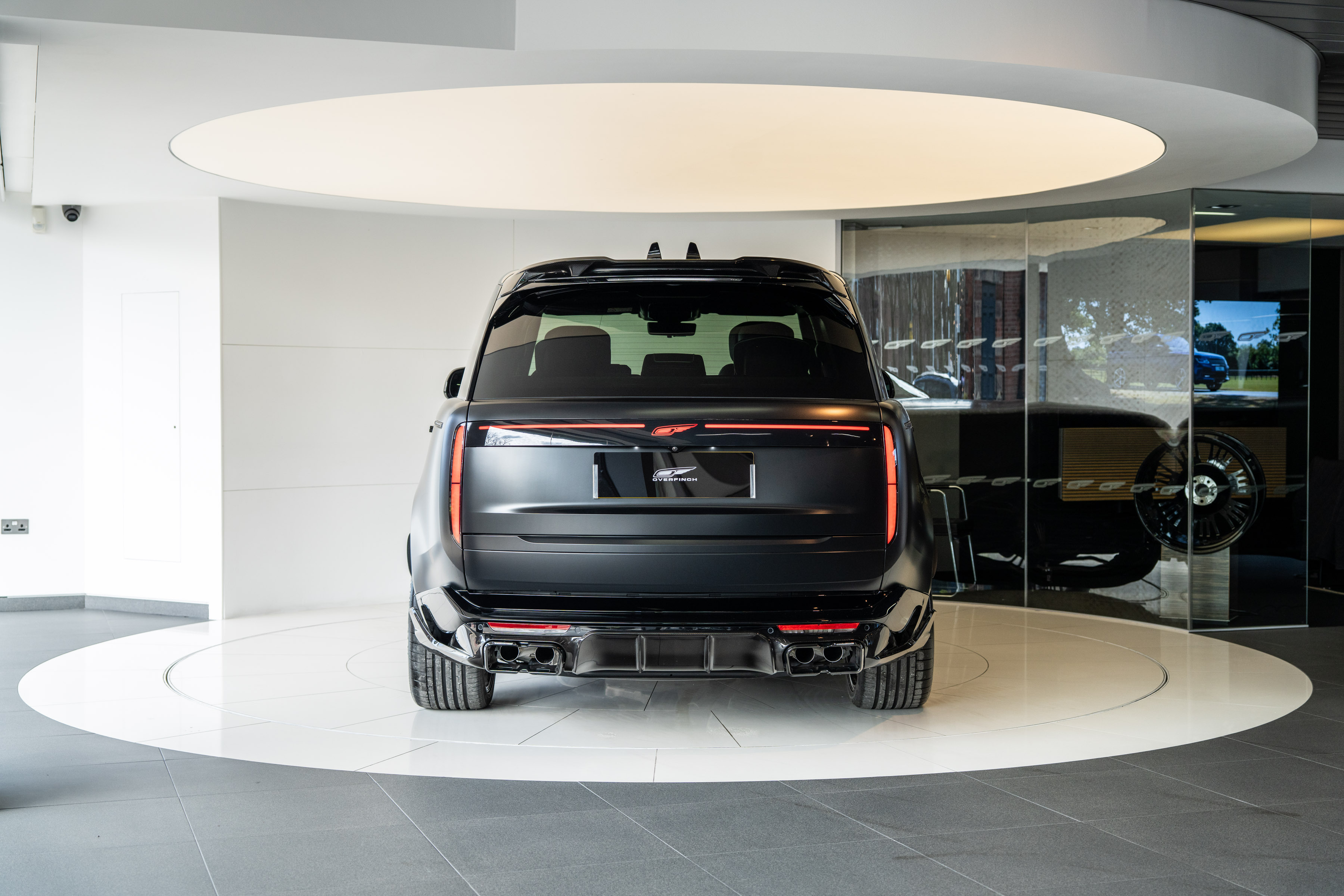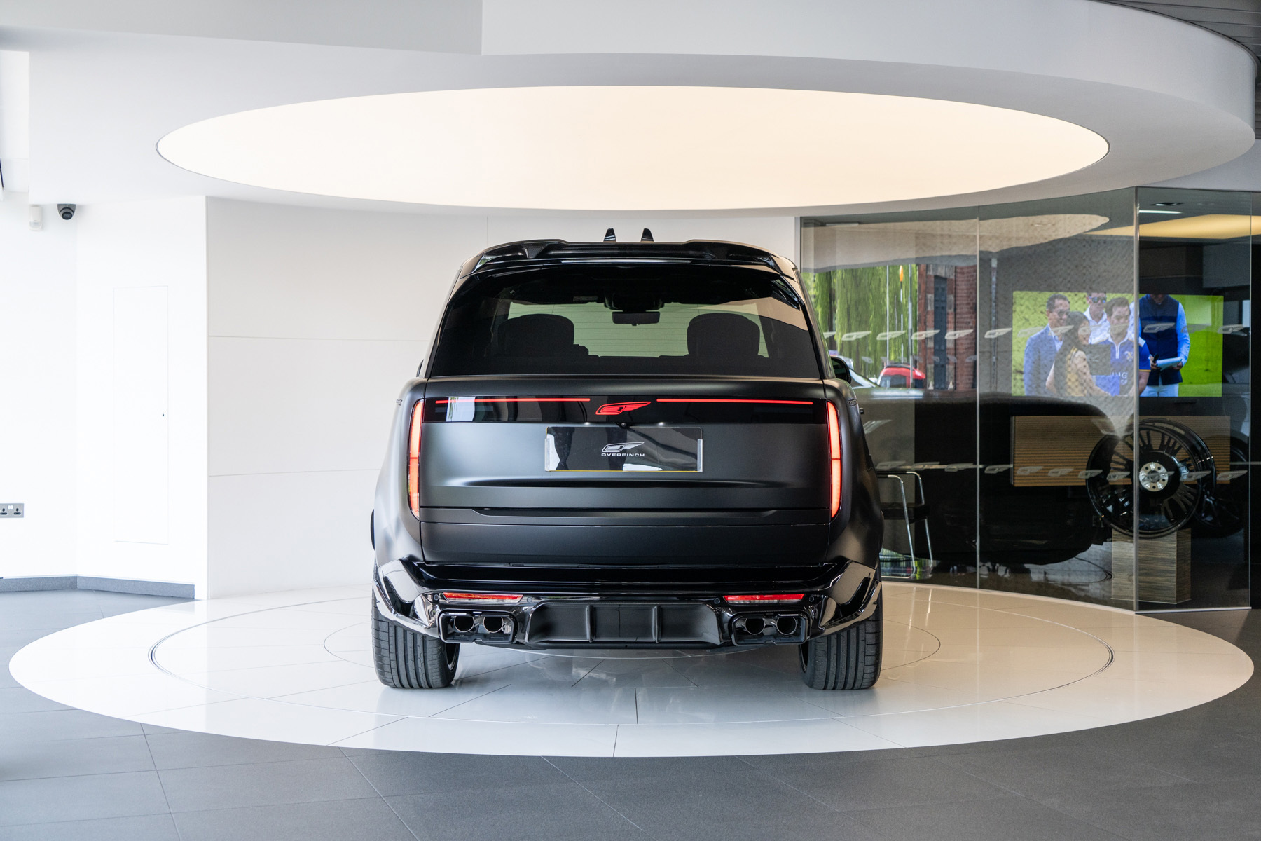 Overfinch Carbon Fibre Body Styling Package Comprising of Front Bumper Eyebrow Set with Visual Carbon Fibre Splitter and Side Wing Set, Integrated Carbon Fibre Bumper Insert, 6 Piece Visual Carbon Fibre Side Skirt Set, Visual Herringbone Carbon Fibre Diffuser with Cast Overfinch Engraved Exhaust Tips, Visual Carbon Fibre Roof Spoiler and Signature Rear Light Plinth with Illuminated Blade Badging