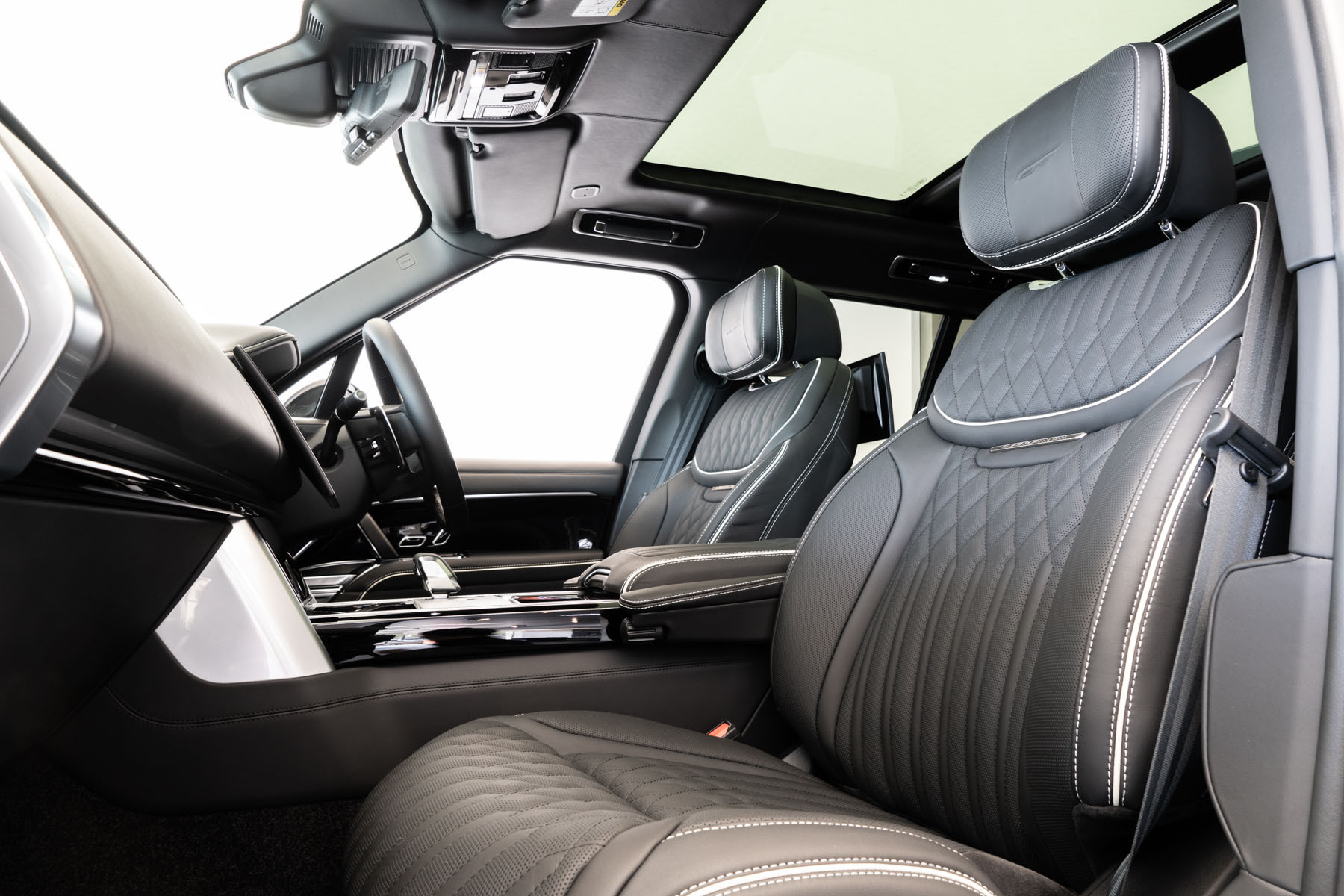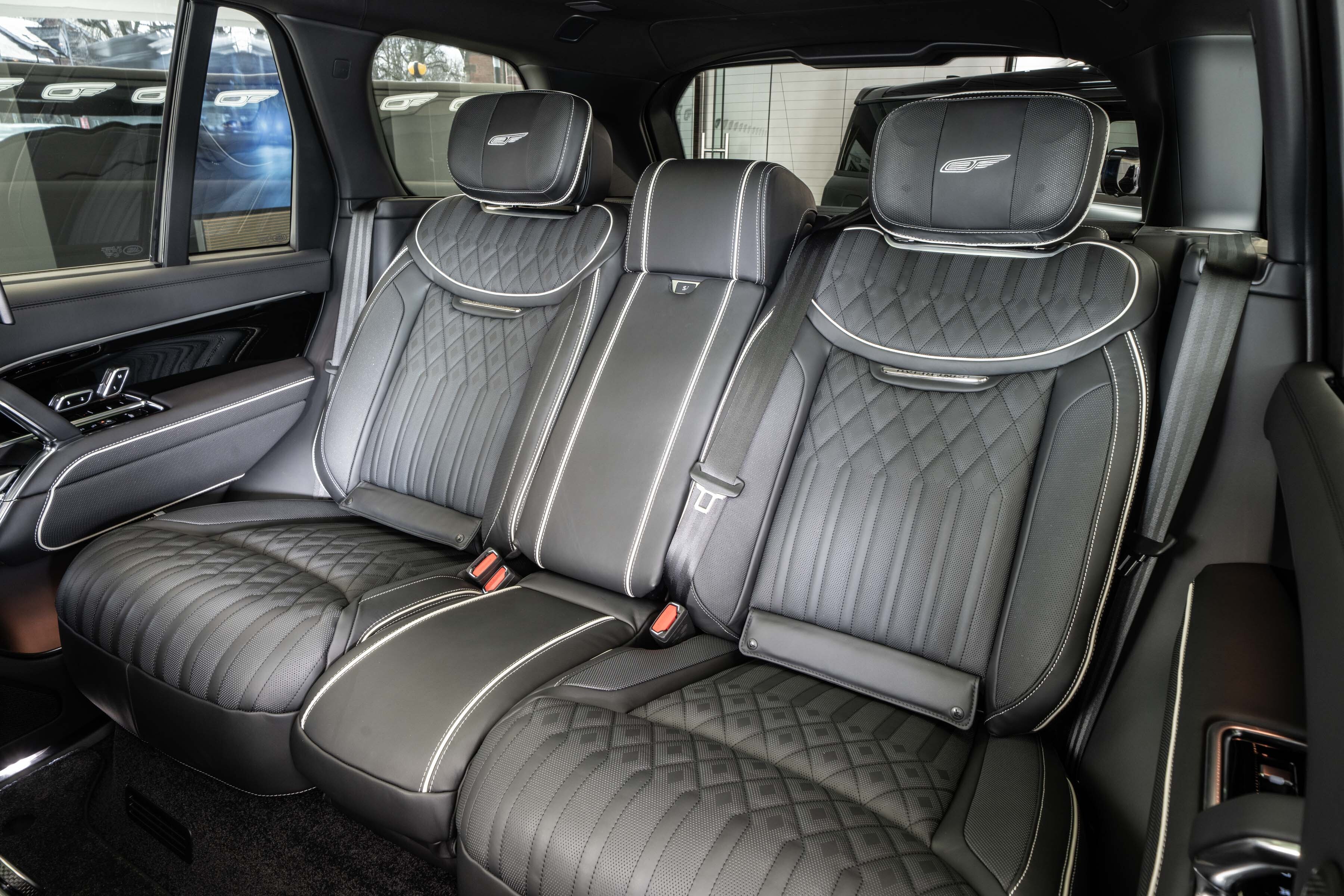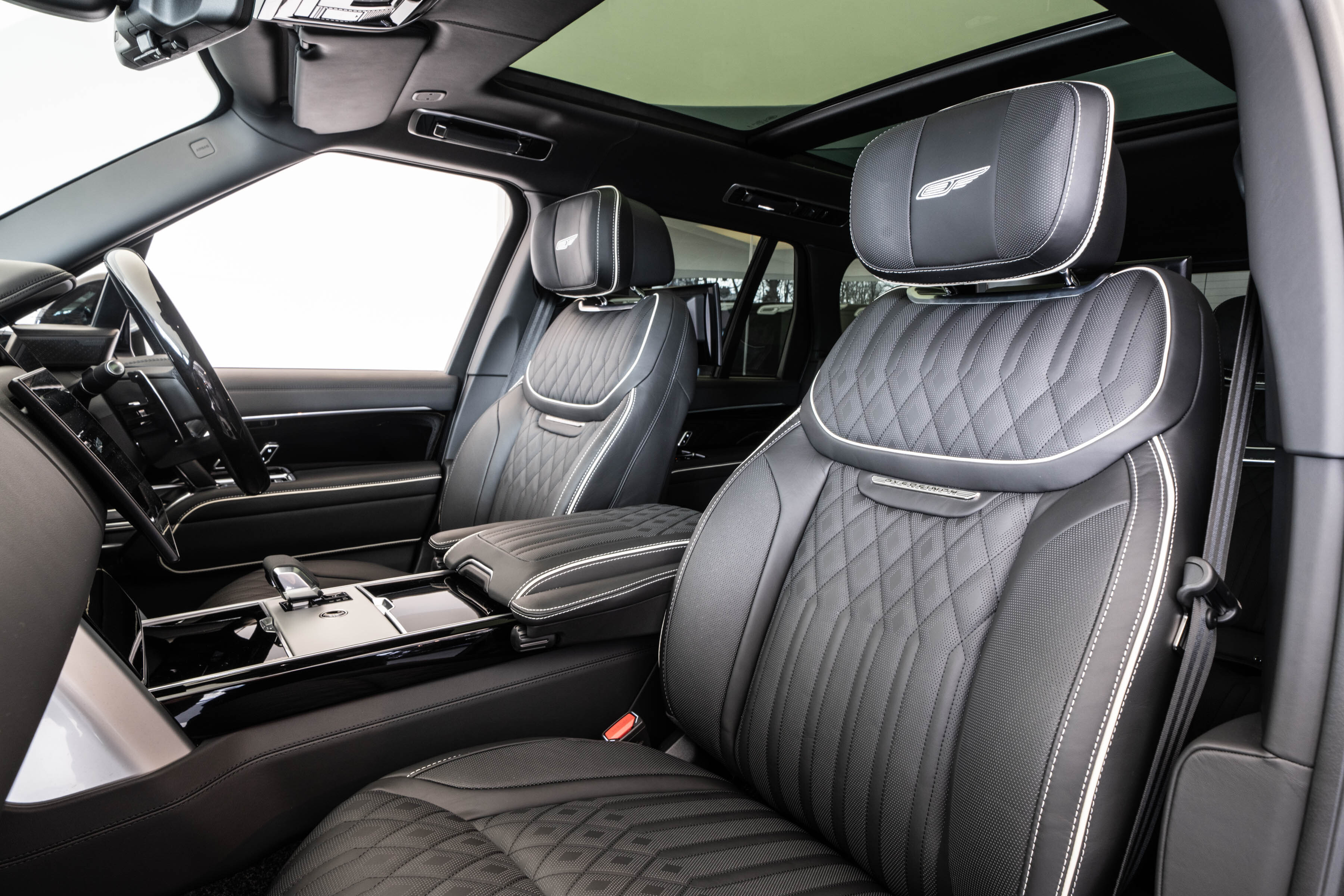 Overfinch Aurora Diamond Quilted Leather Interior is Hand-trimmed in Ebony with Contrasting Perlino Details
