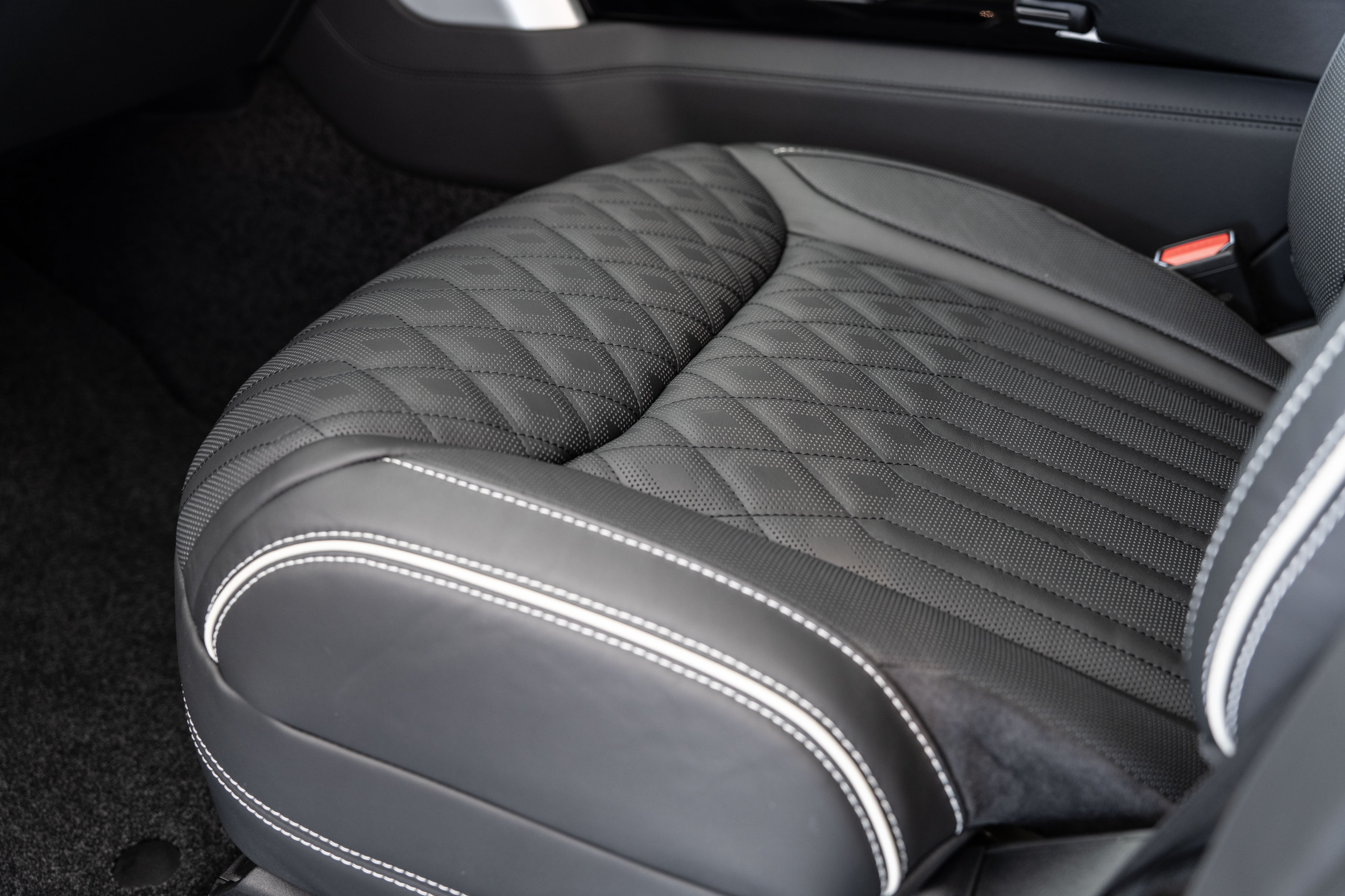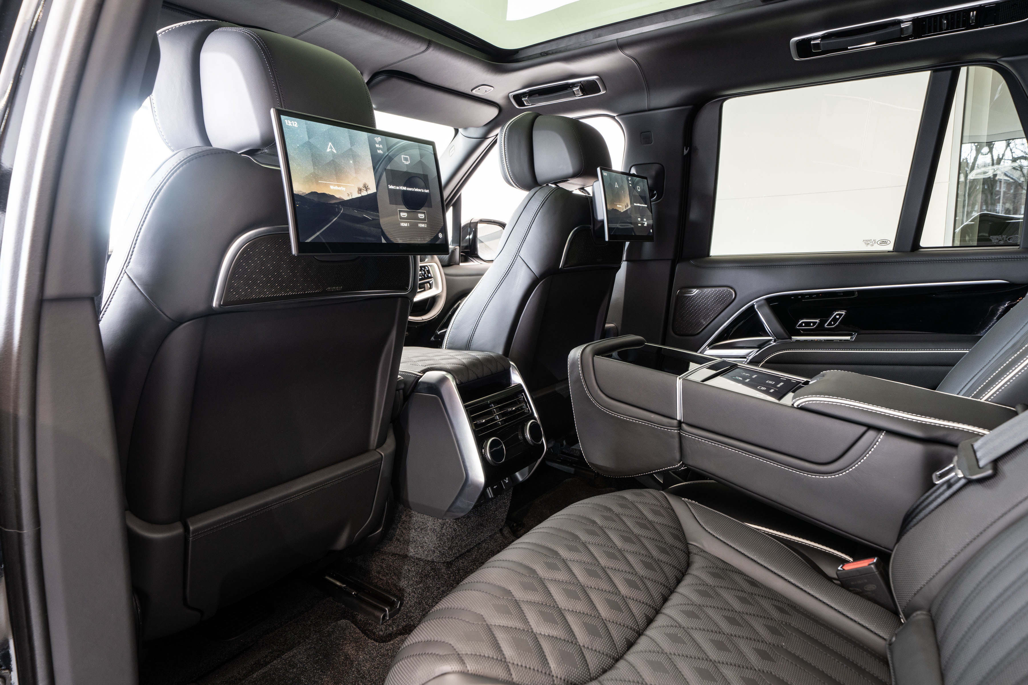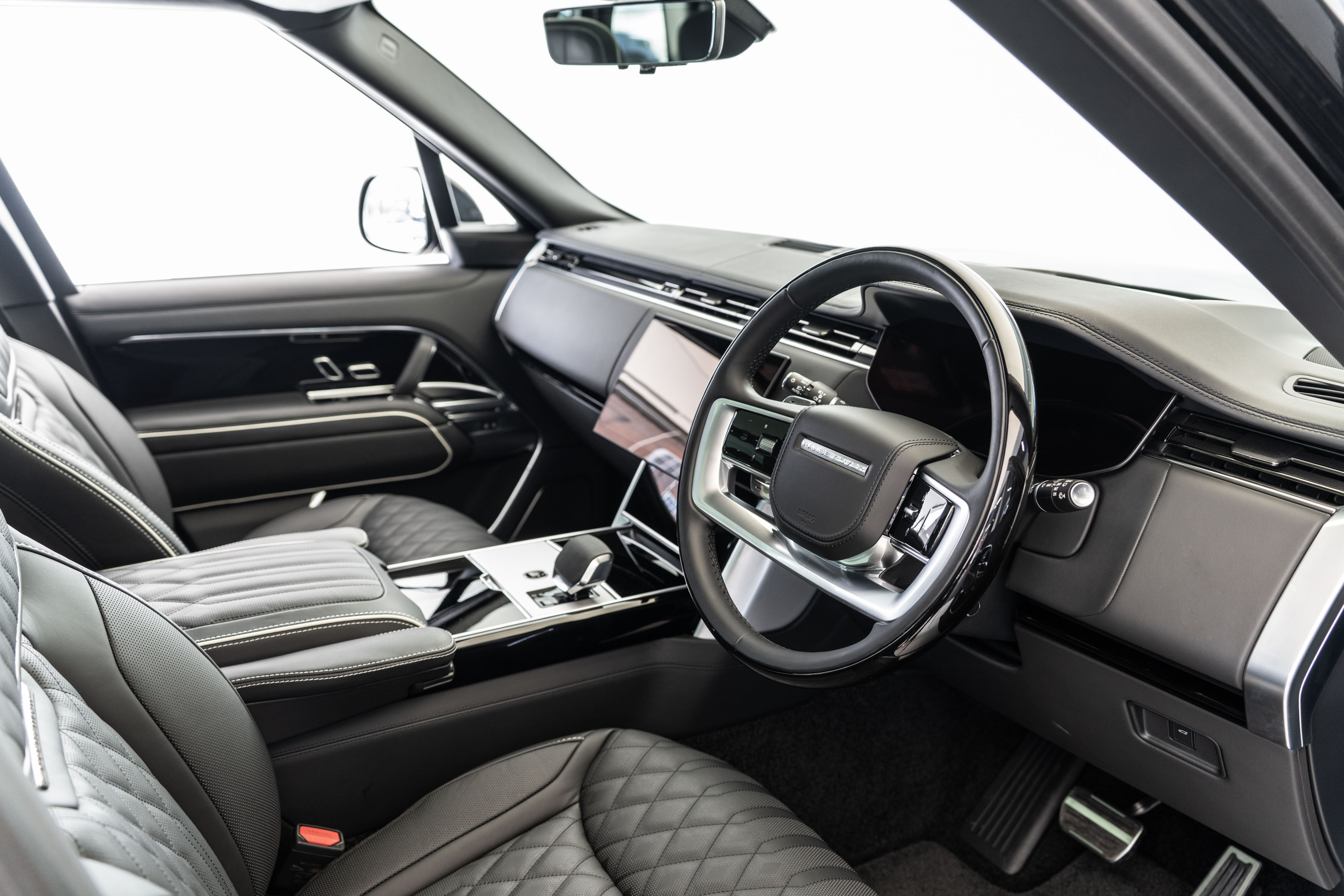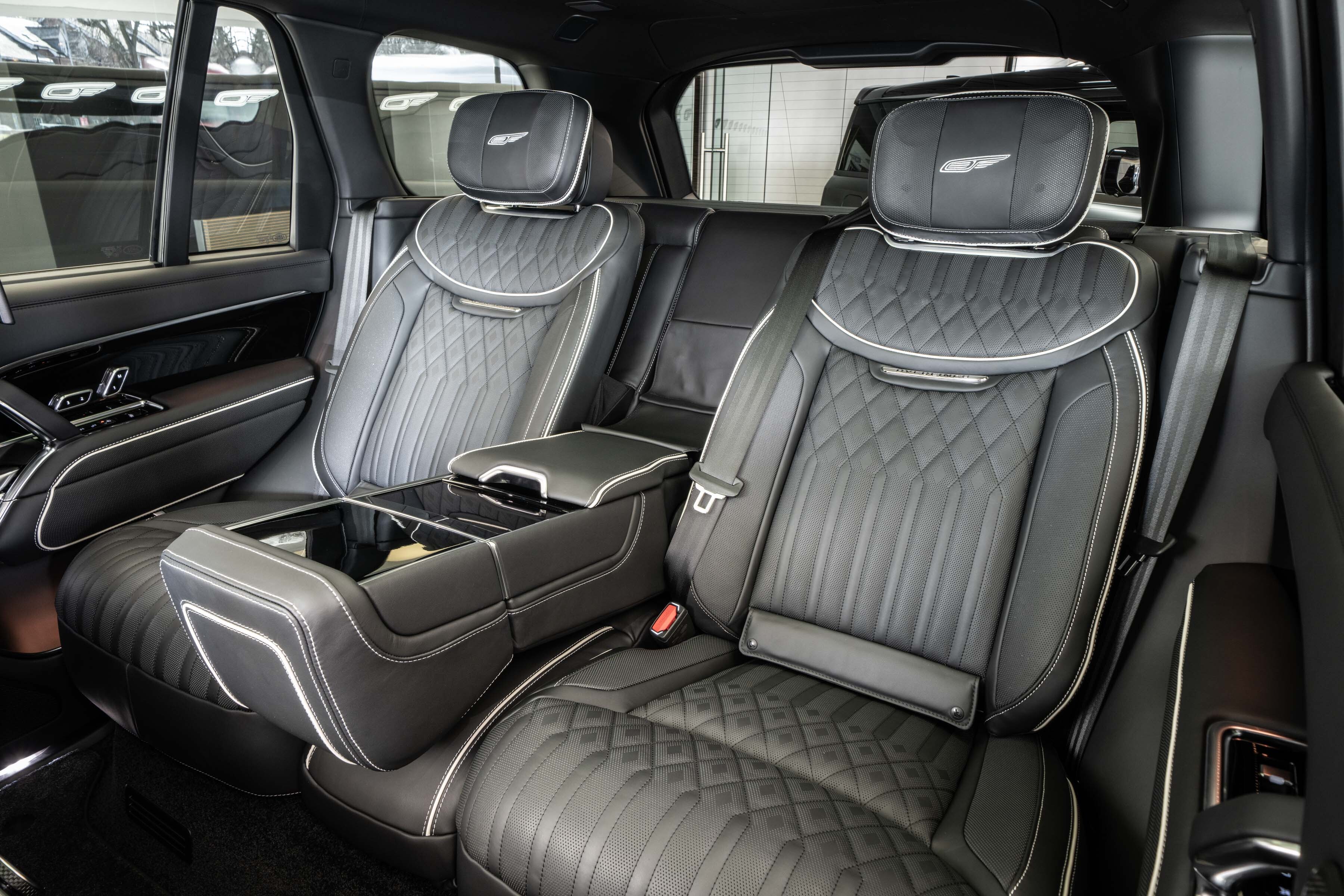 Overfinch Aurora Diamond Quilted Leather Interior is Hand-trimmed in Ebony with Contrasting Perlino Details