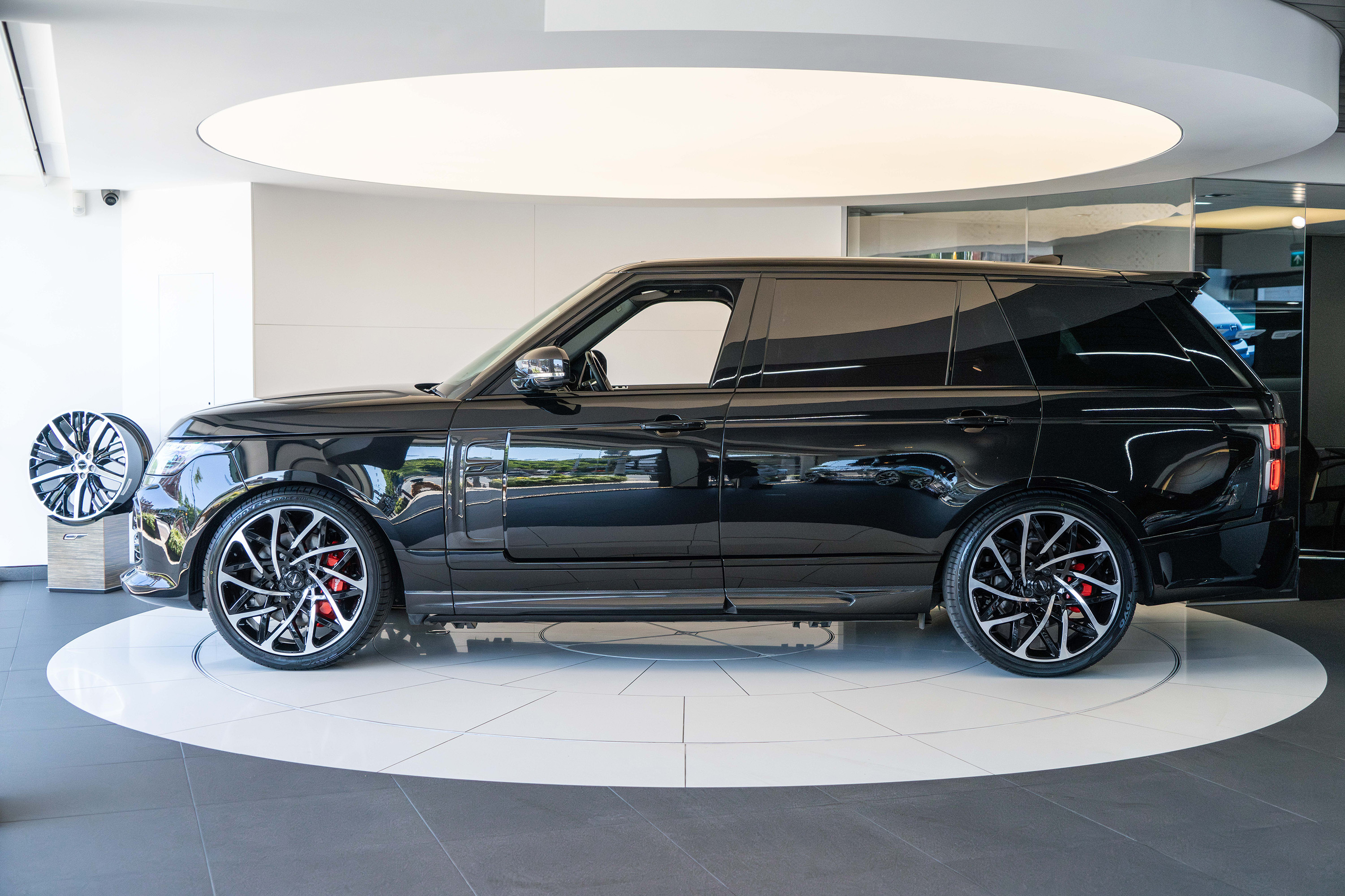23” Cyclone Wheels in Gloss Black with Diamond Turned Face with Red Brake Callipers