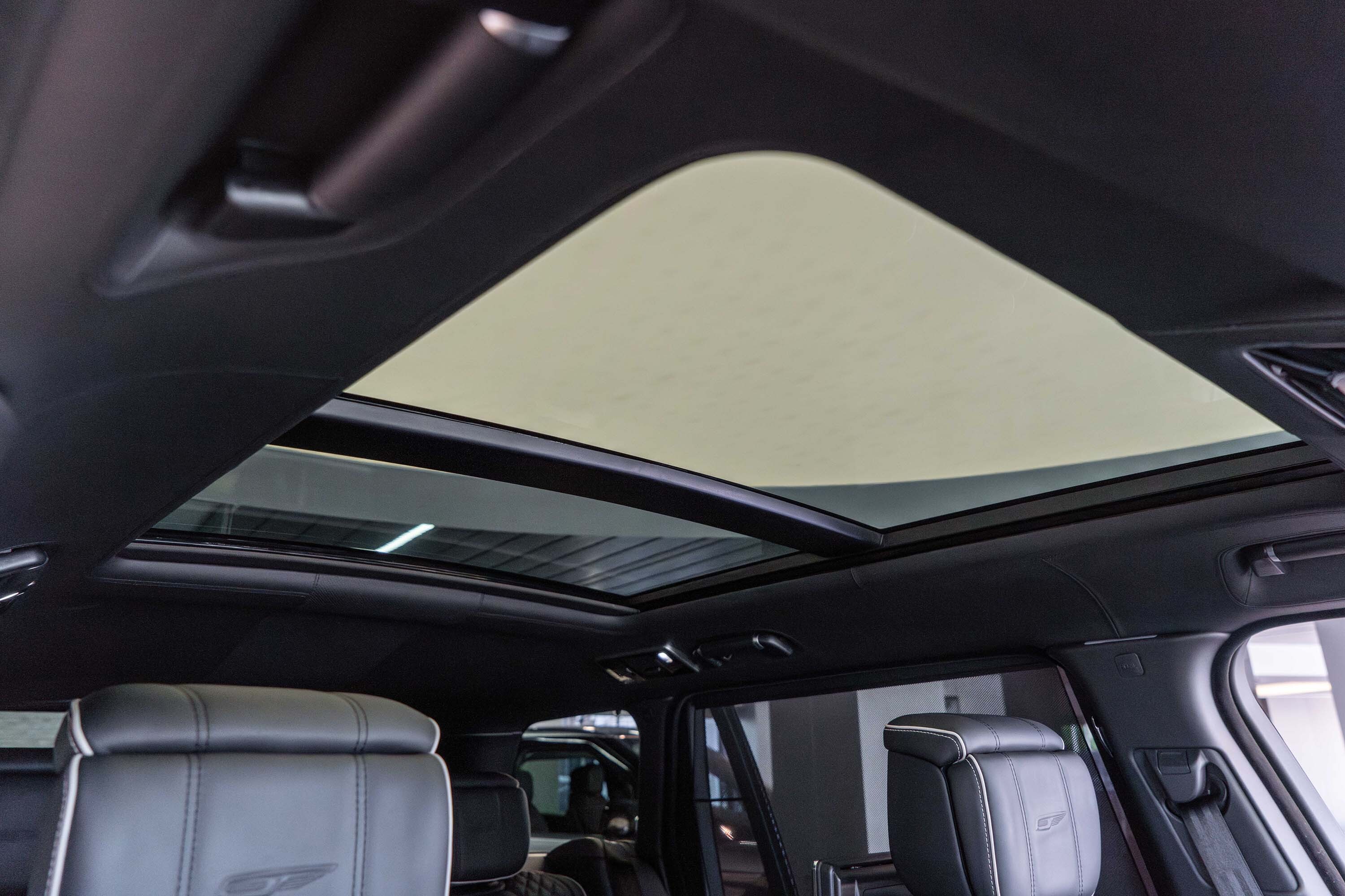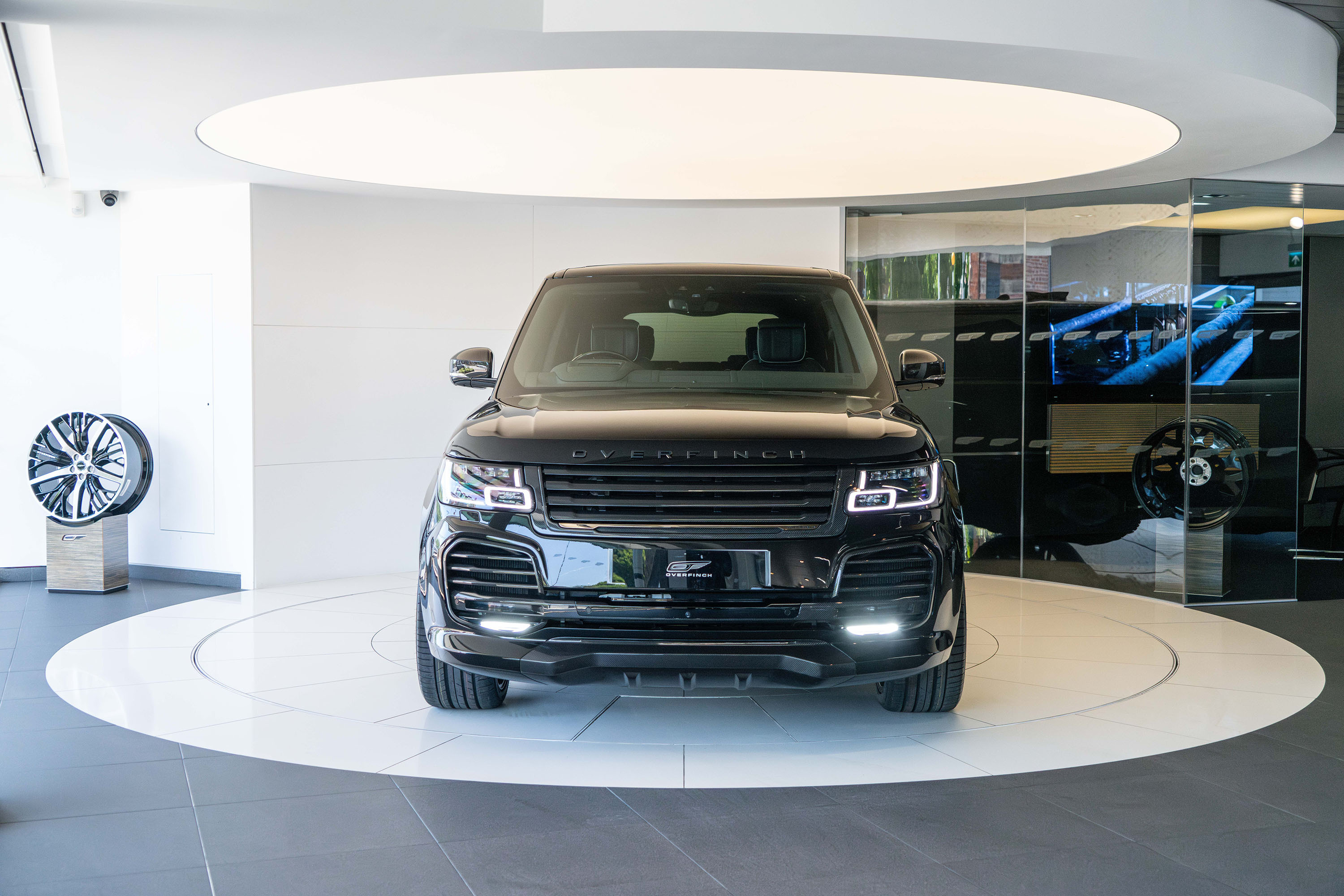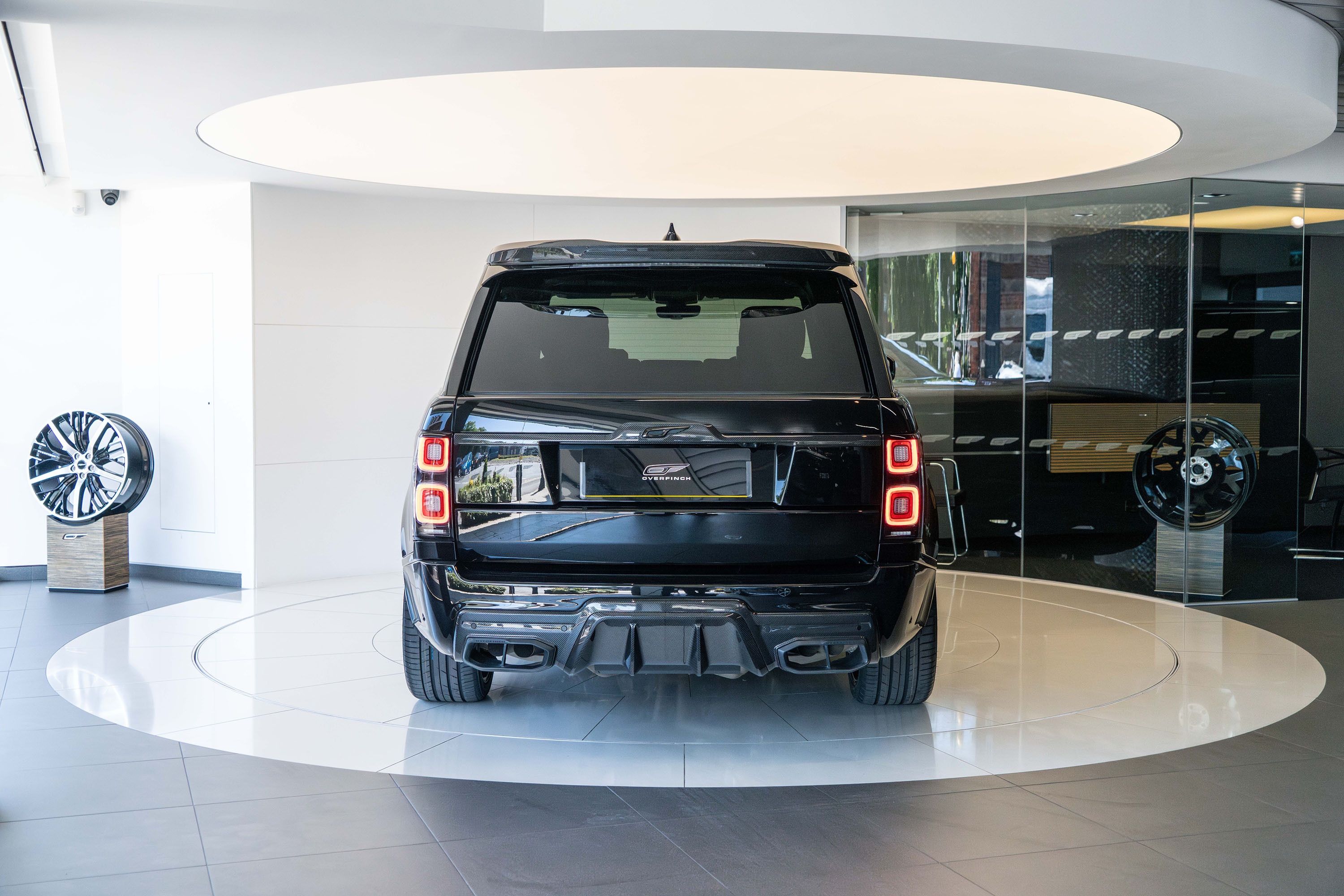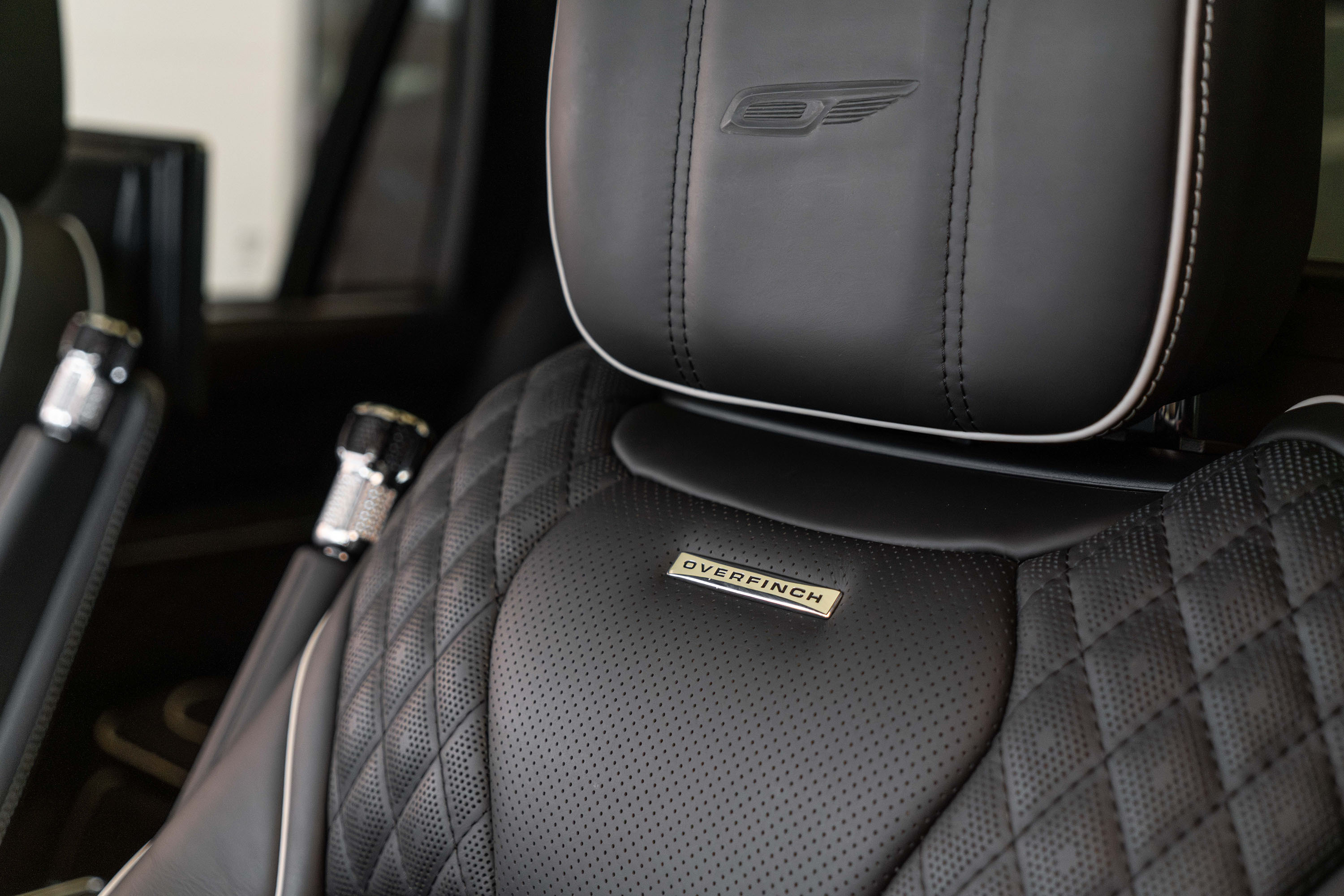 Overfinch Lumiere Diamond Quilted Leather Interior Comprising of Seats, Cubby Box Lid and Door Arm Rests Trimmed in Bridge of Weir Premium Ebony Leather, Perforated Ebony Centres, Contrast Cirrus Micropiping and Stitching