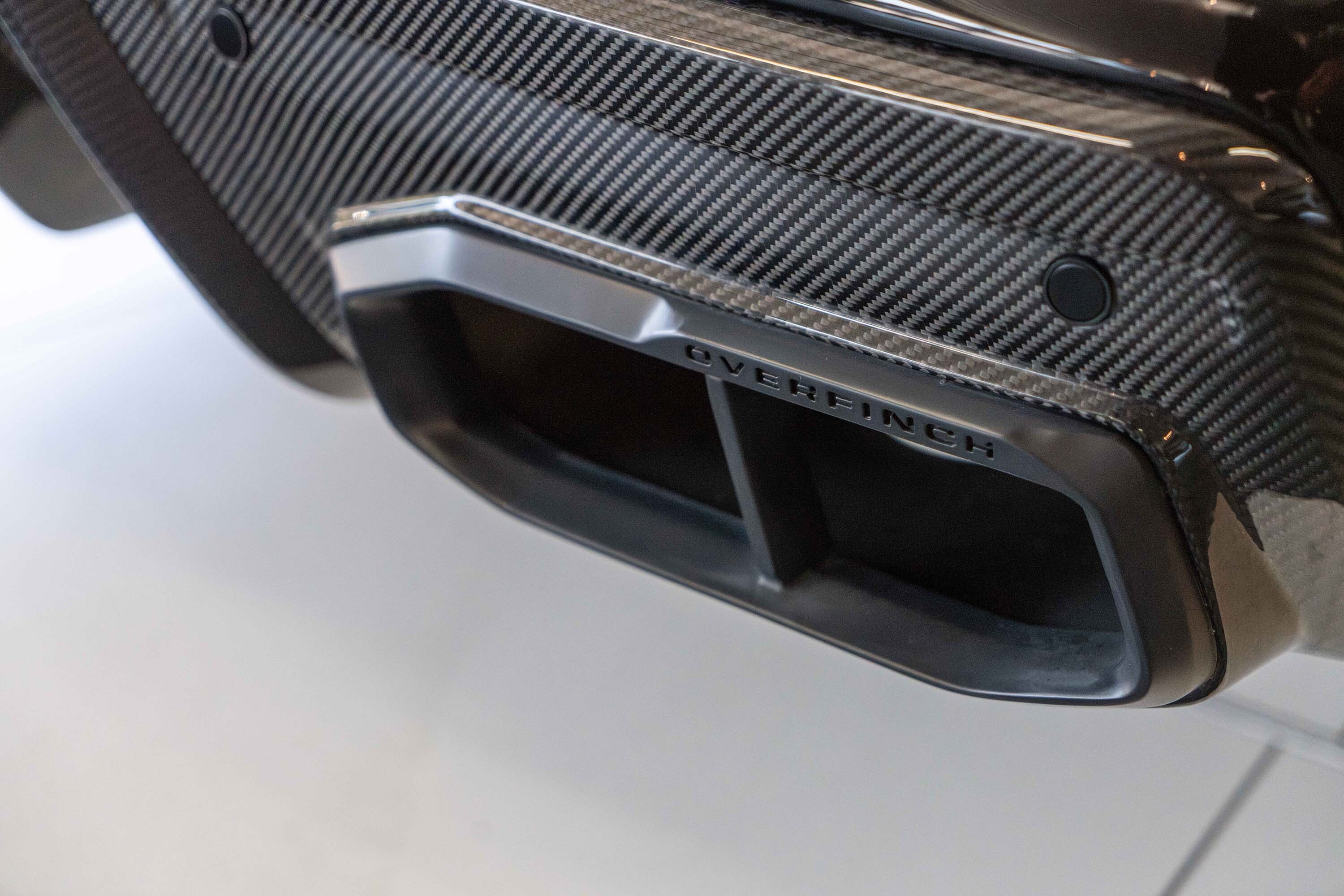 Overfinch Carbon Fibre Body Styling Package Comprising of Front Bumper Eyebrow Set with Visual Carbon Fibre Splitter and Side Wing Set, Integrated Carbon Fibre Bumper Insert, 6 Piece Visual Carbon Fibre Side Skirt Set, Visual Herringbone Carbon Fibre Diffuser with Cast Overfinch Engraved Exhaust Tips, Visual Carbon Fibre Roof Spoiler