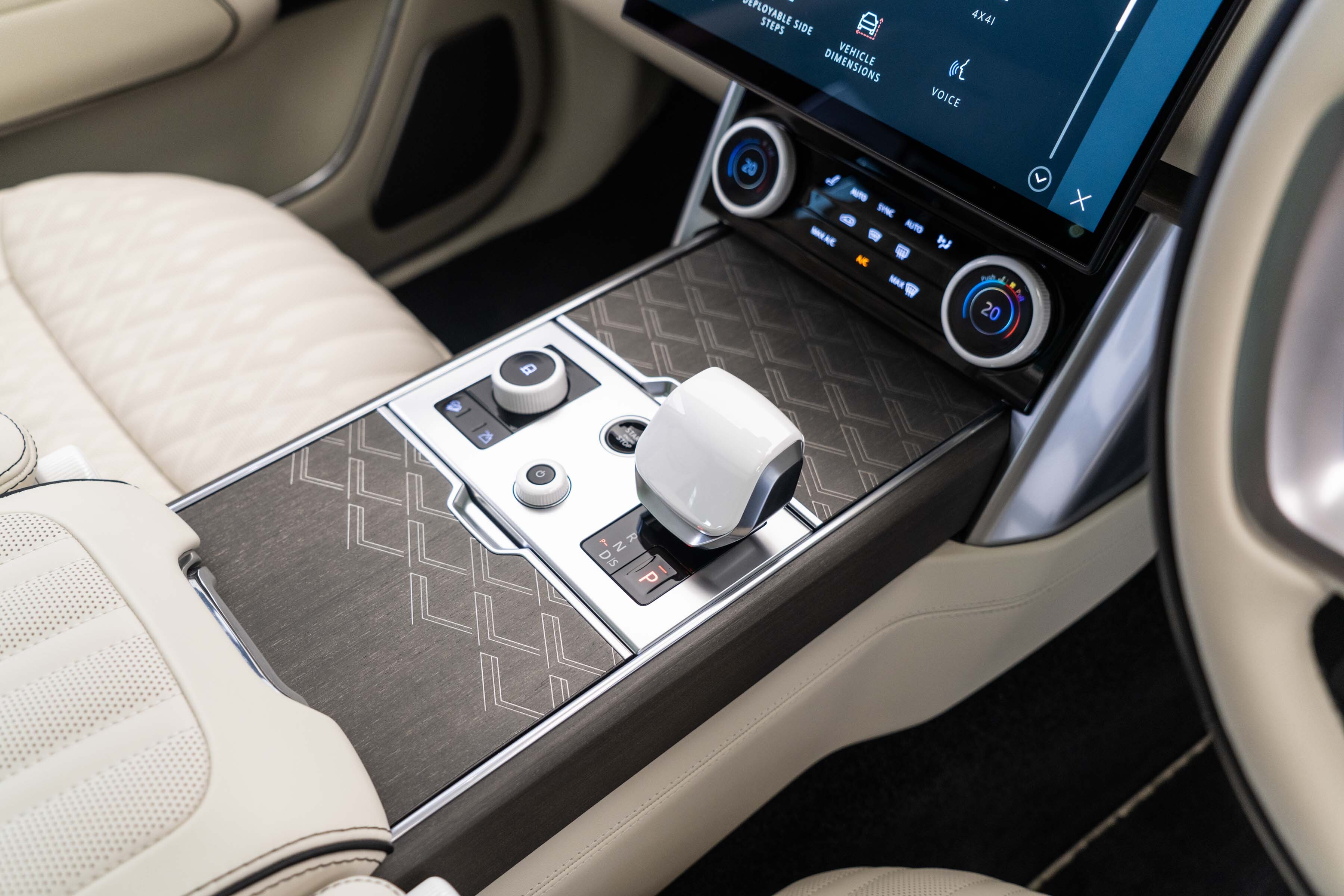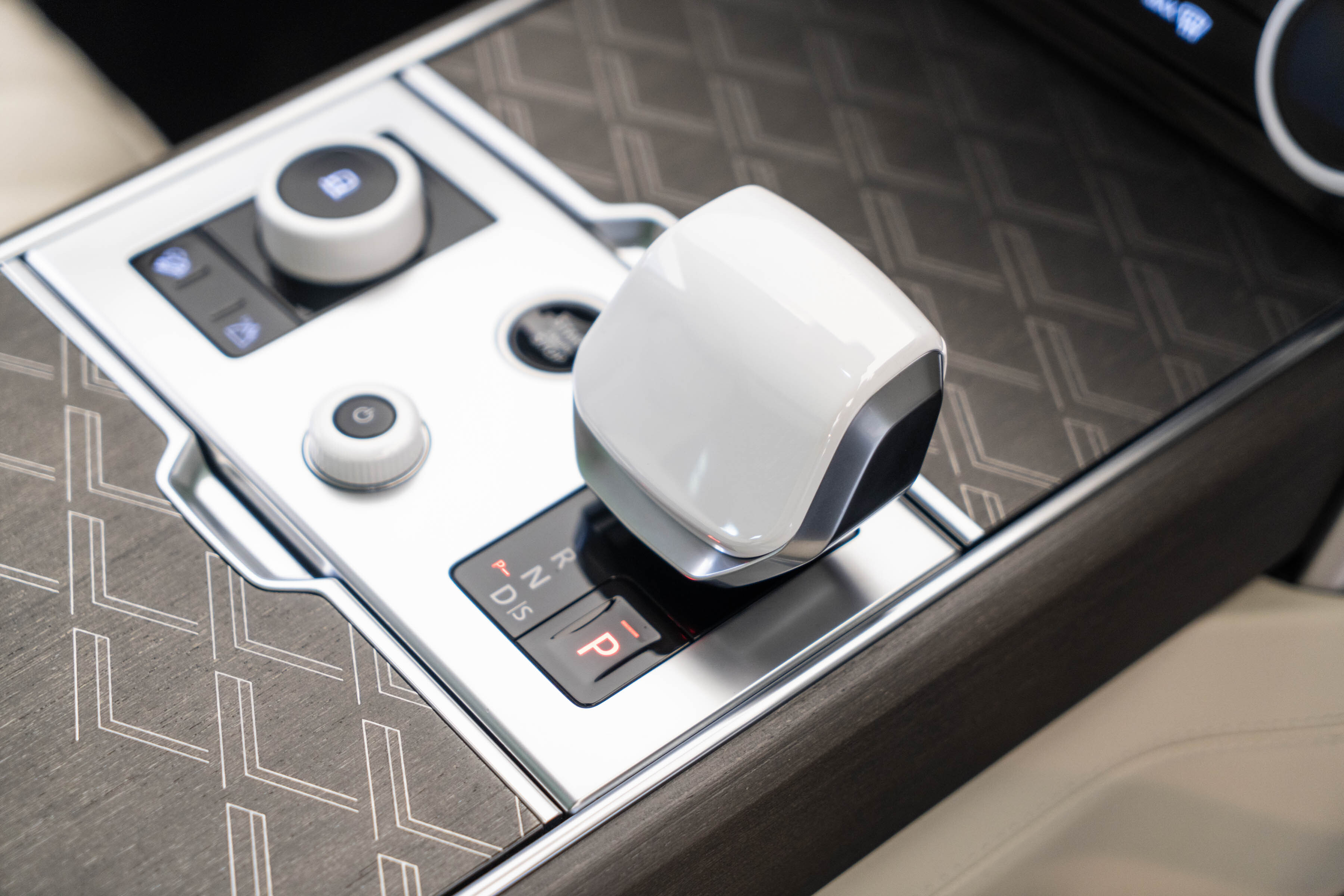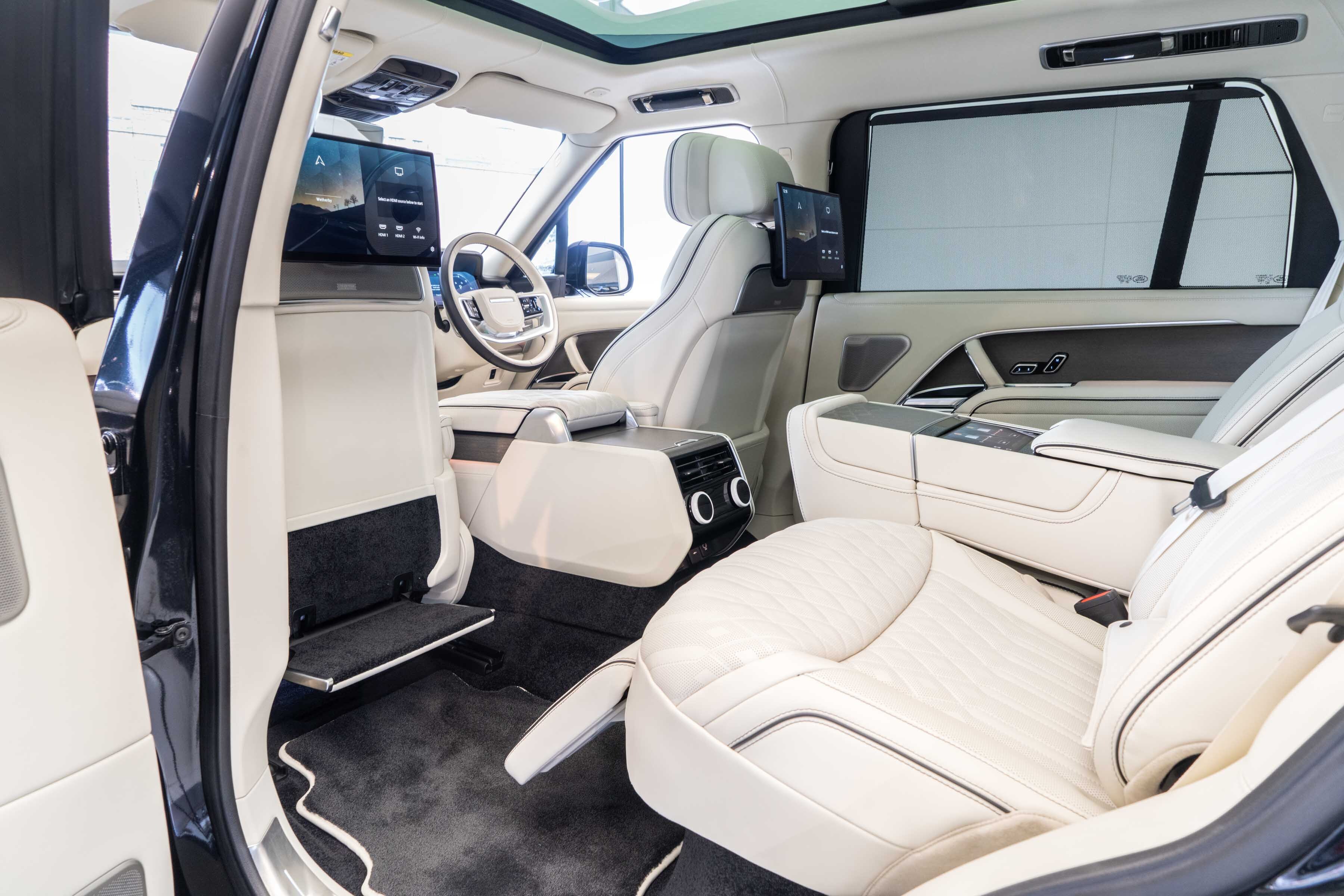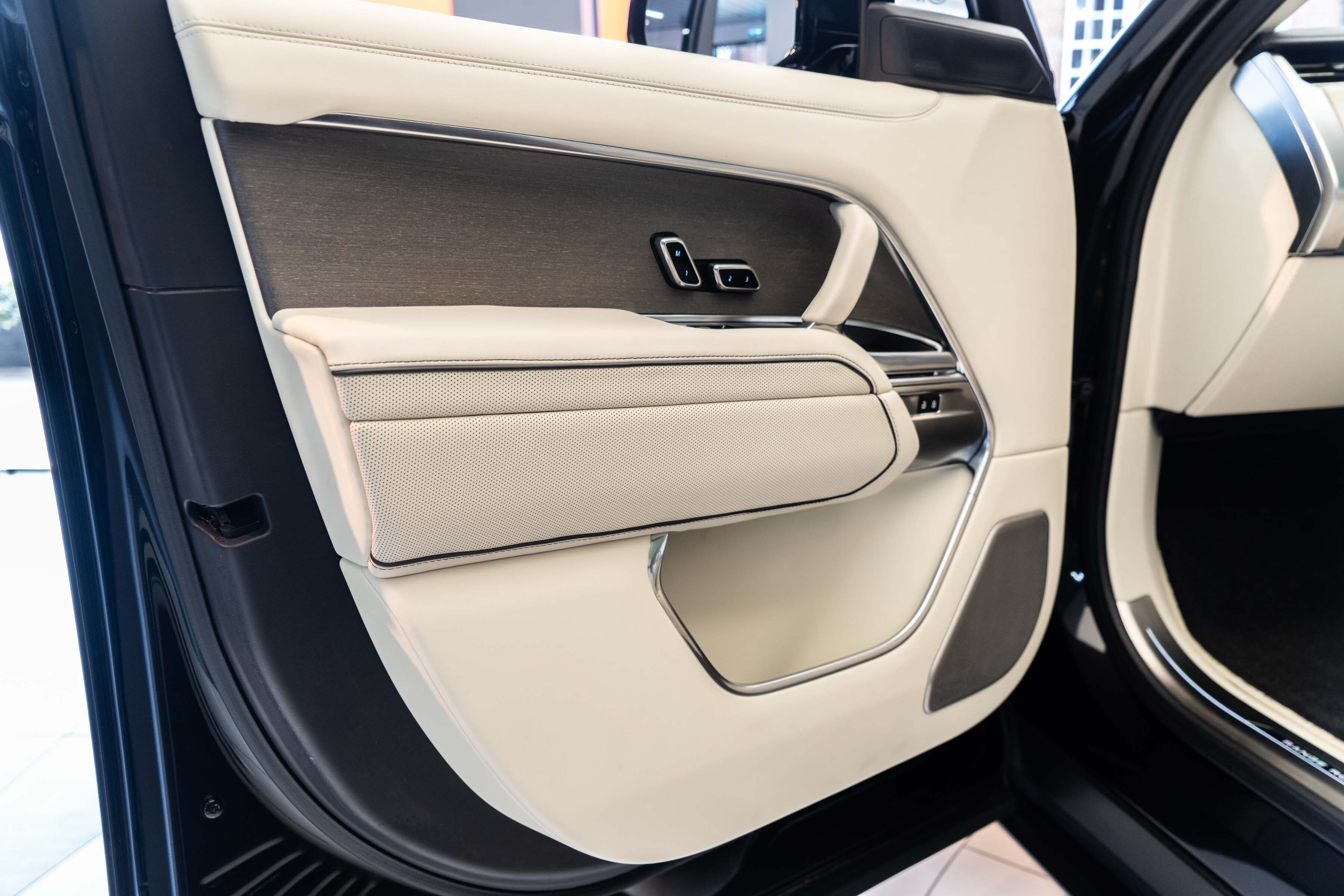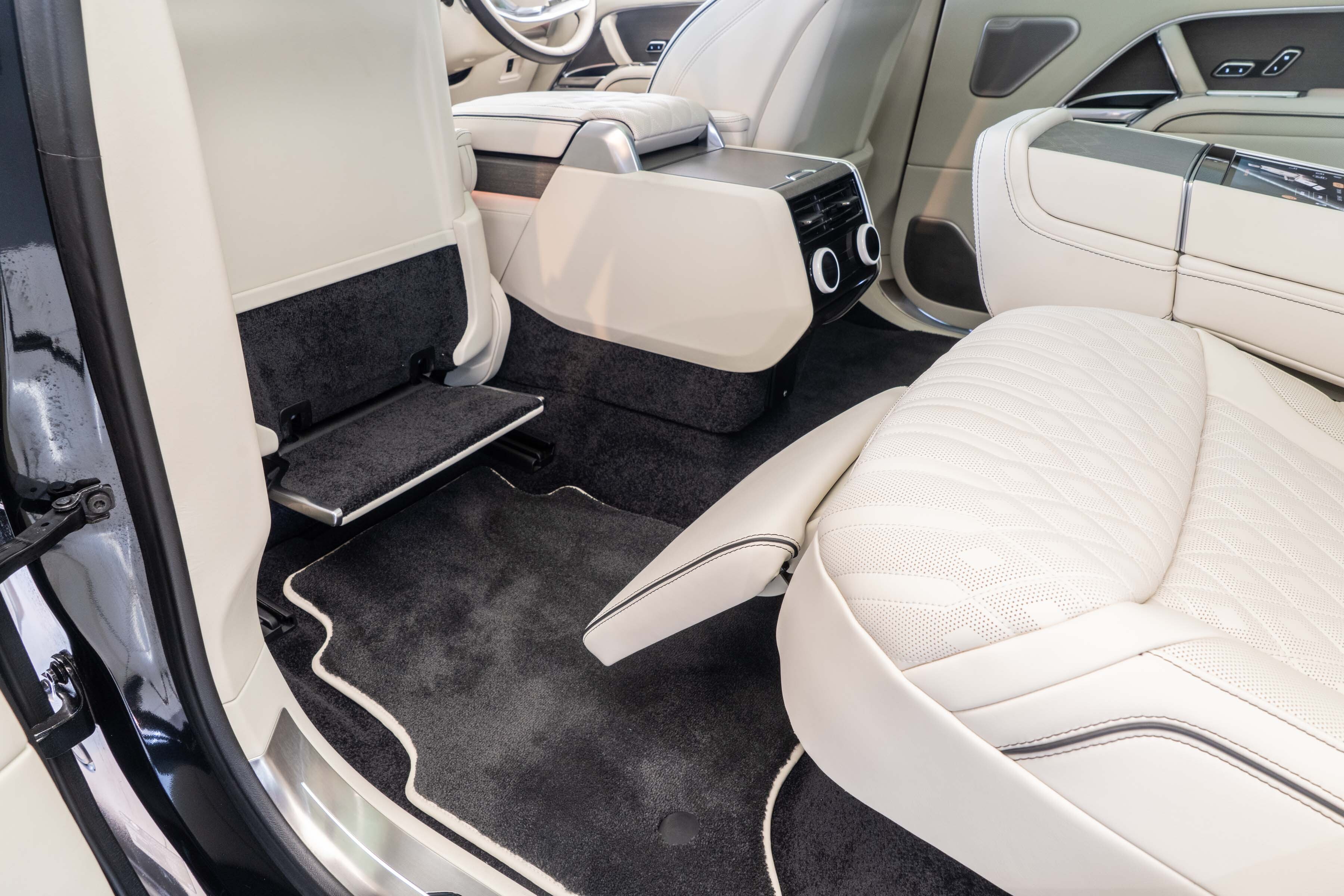 Overfinch Aurora Diamond Quilted Leather Interior Comprising of Seats, Cubby Box Lid and Door Arm Rests Trimmed in Bridge of Weir Premium Ebony Leather, Contrast Perlino Micropiping and Stitching