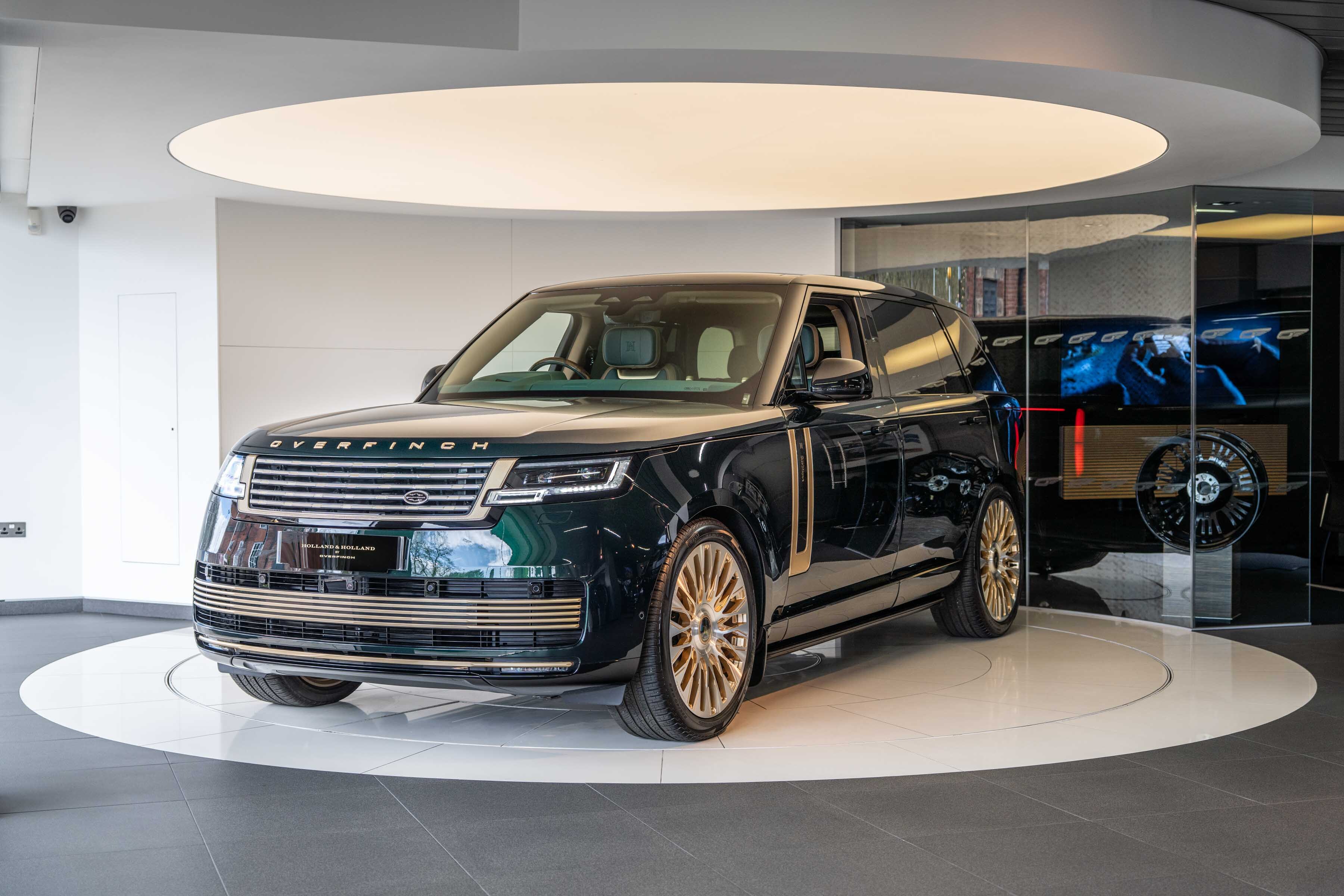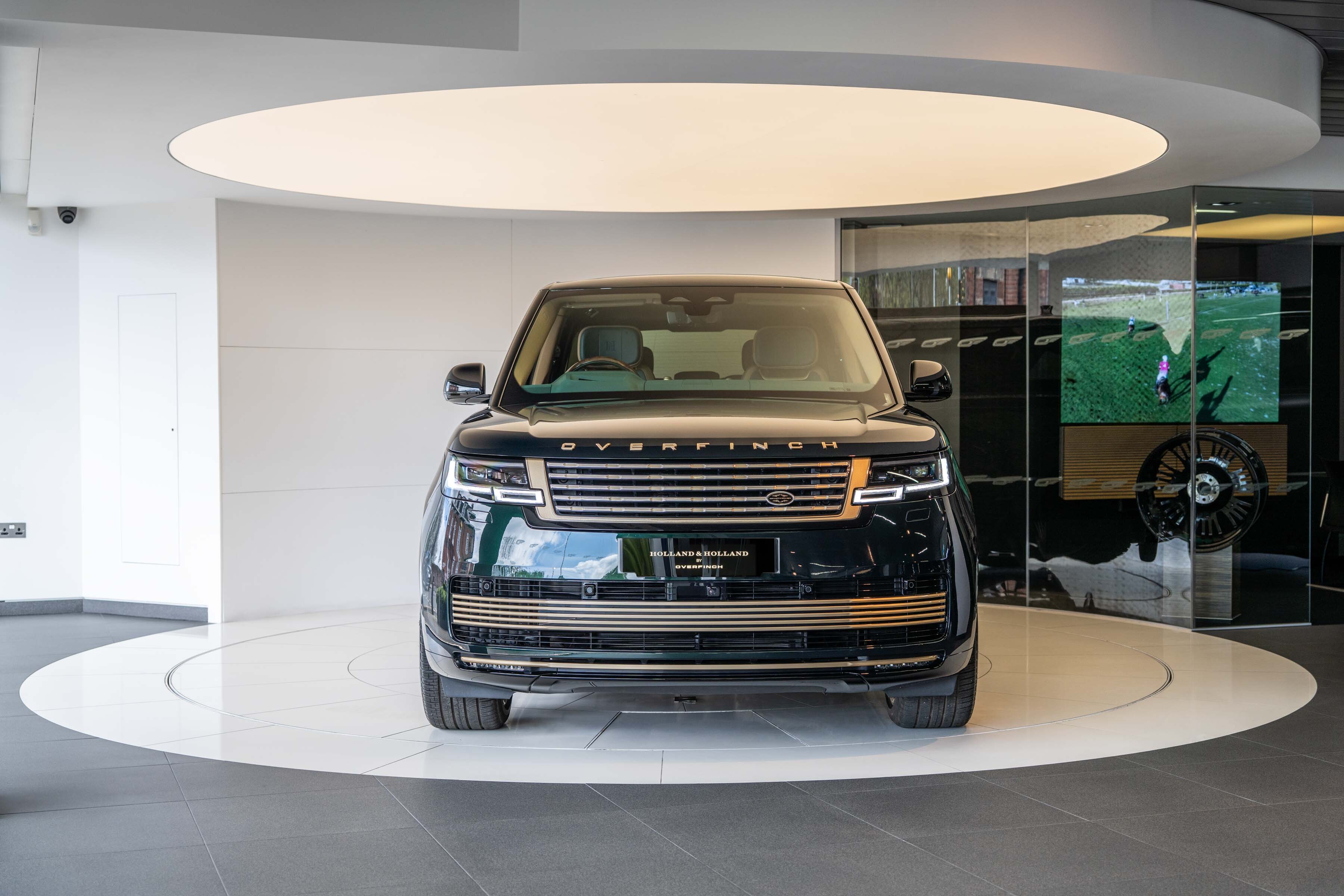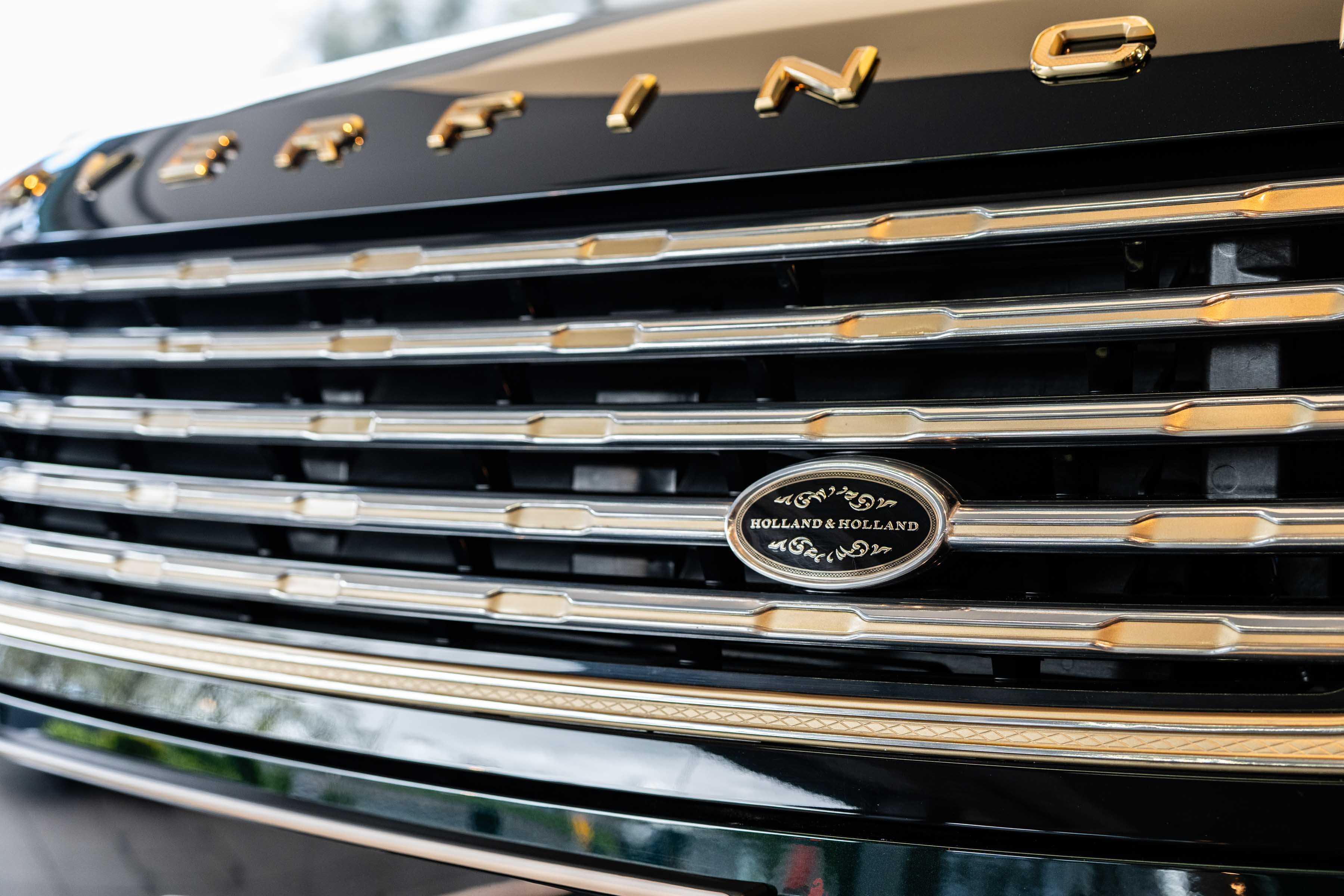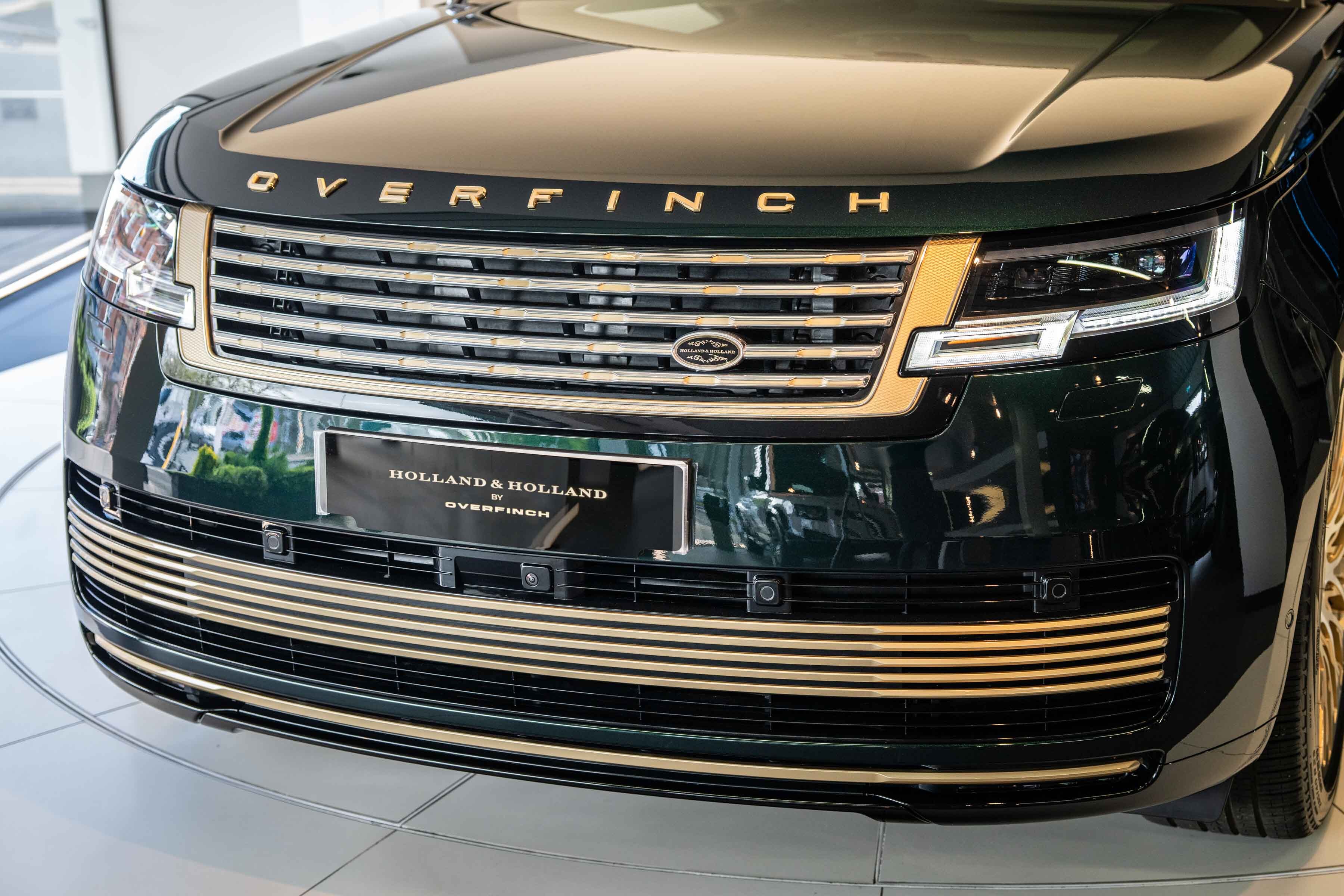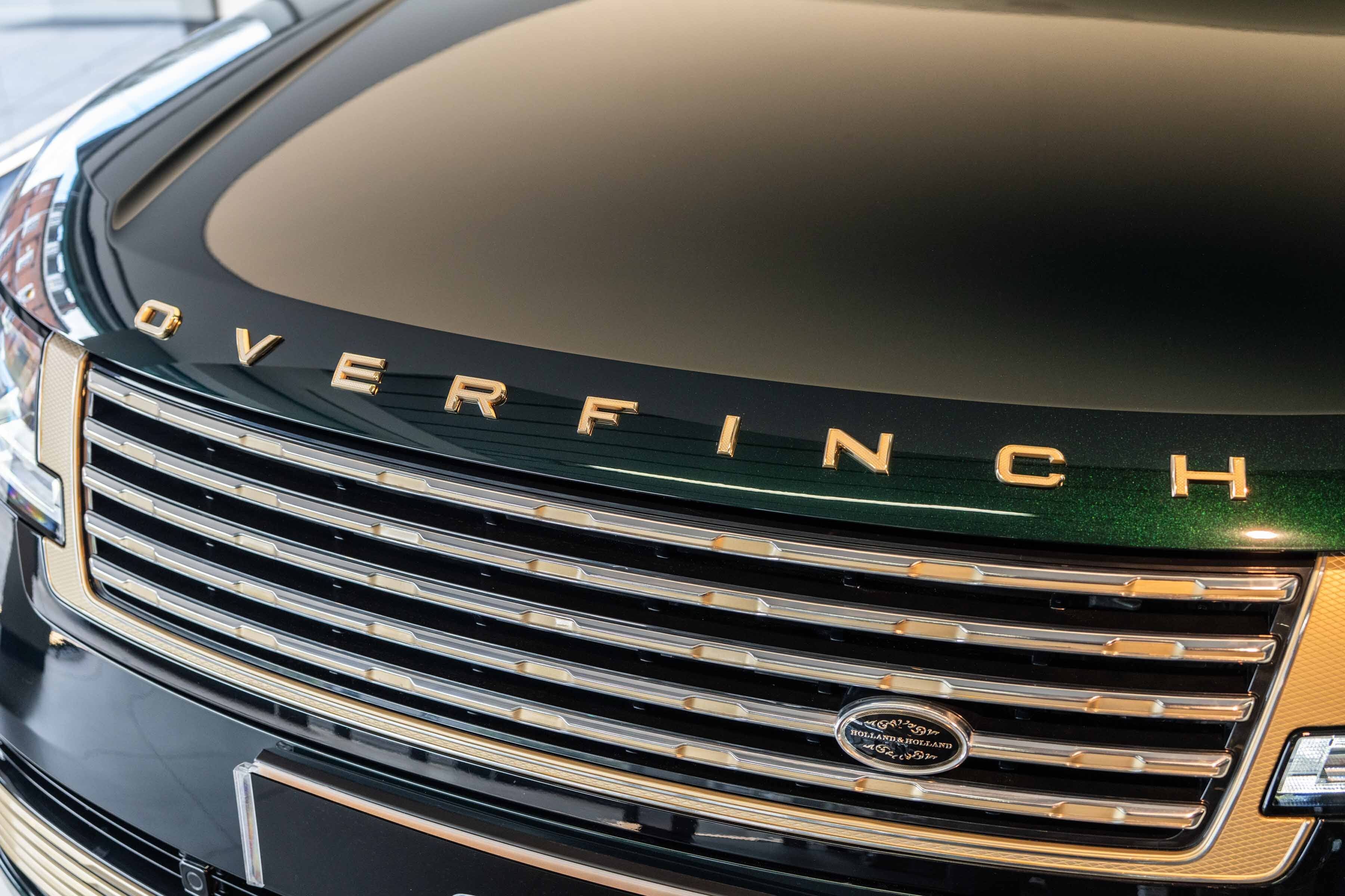Holland & Holland’s insignia is elegantly placed on a machined dual finish grille; intricate louvres and decorative surround anchor a bold front profile complemented by Overfinch’s bespoke bonnet script lettering and a matching lower grille.