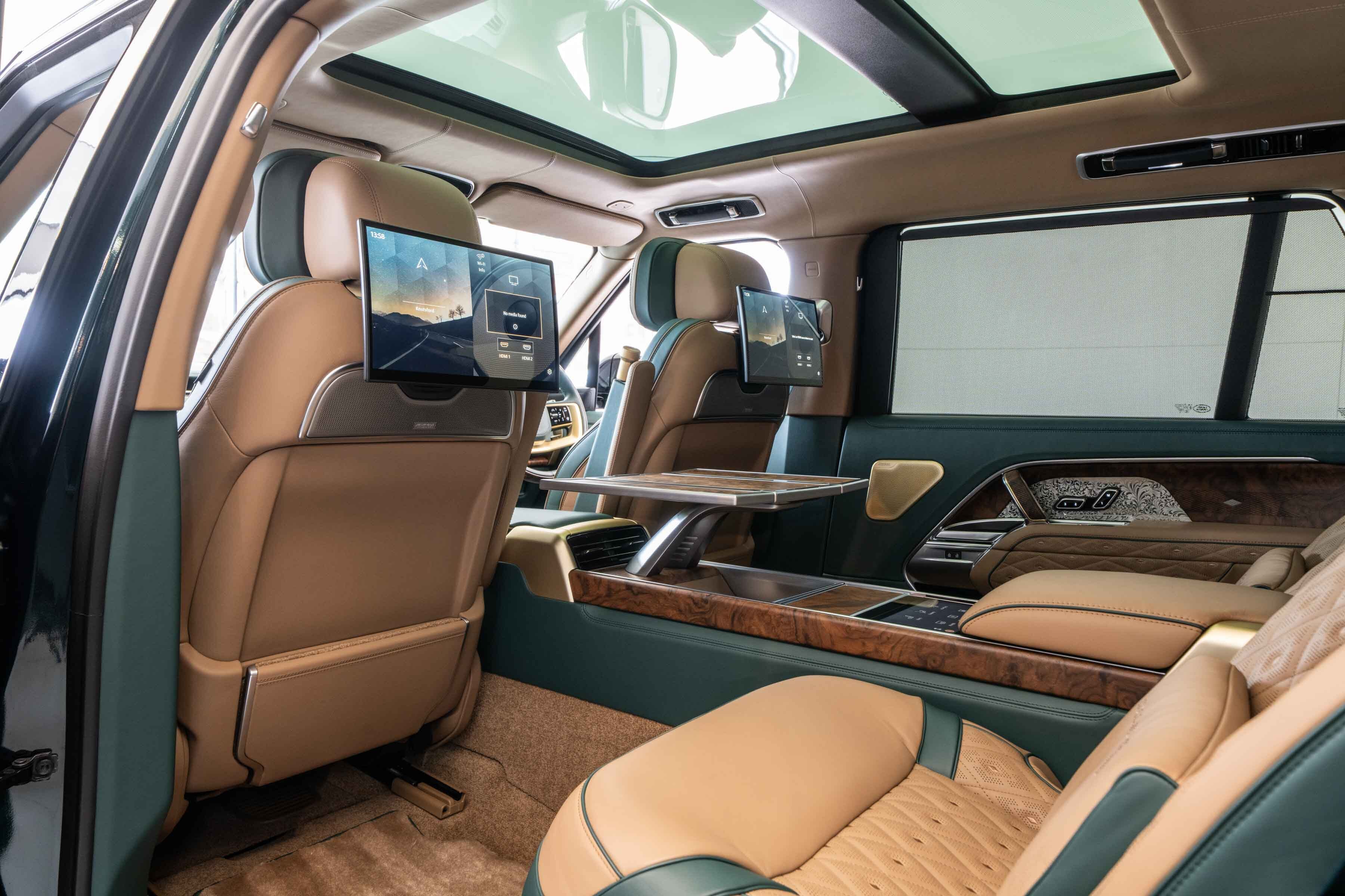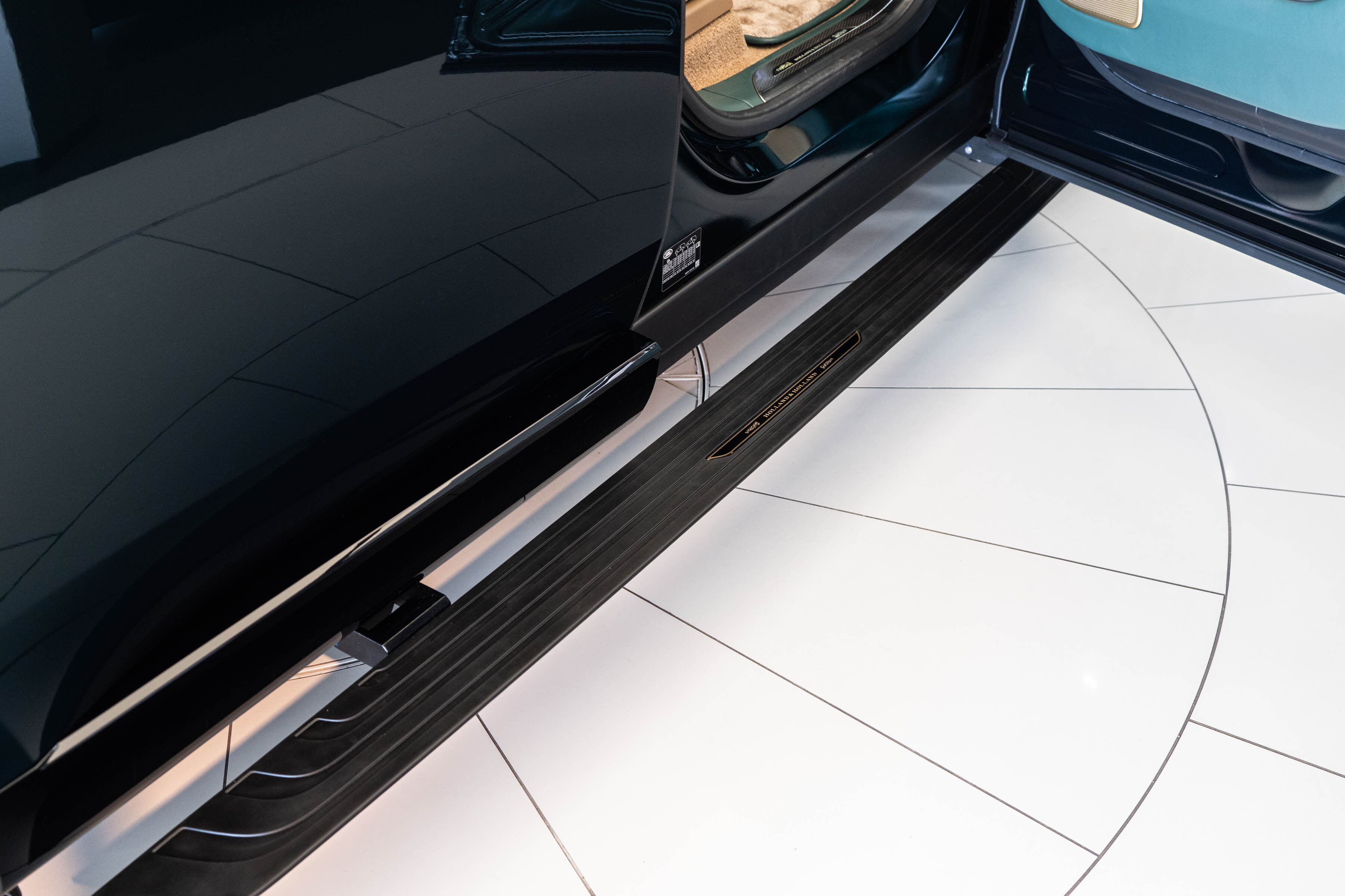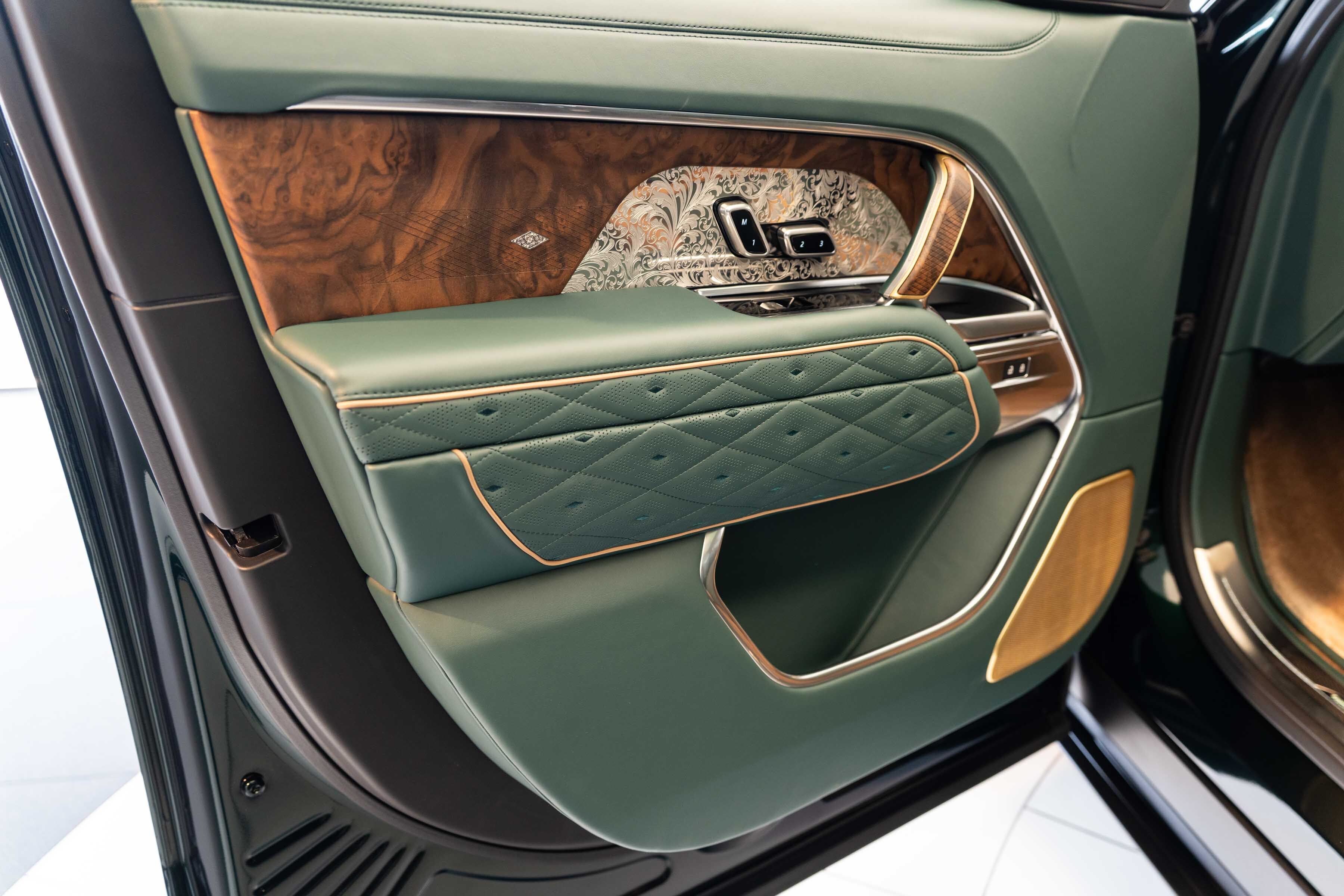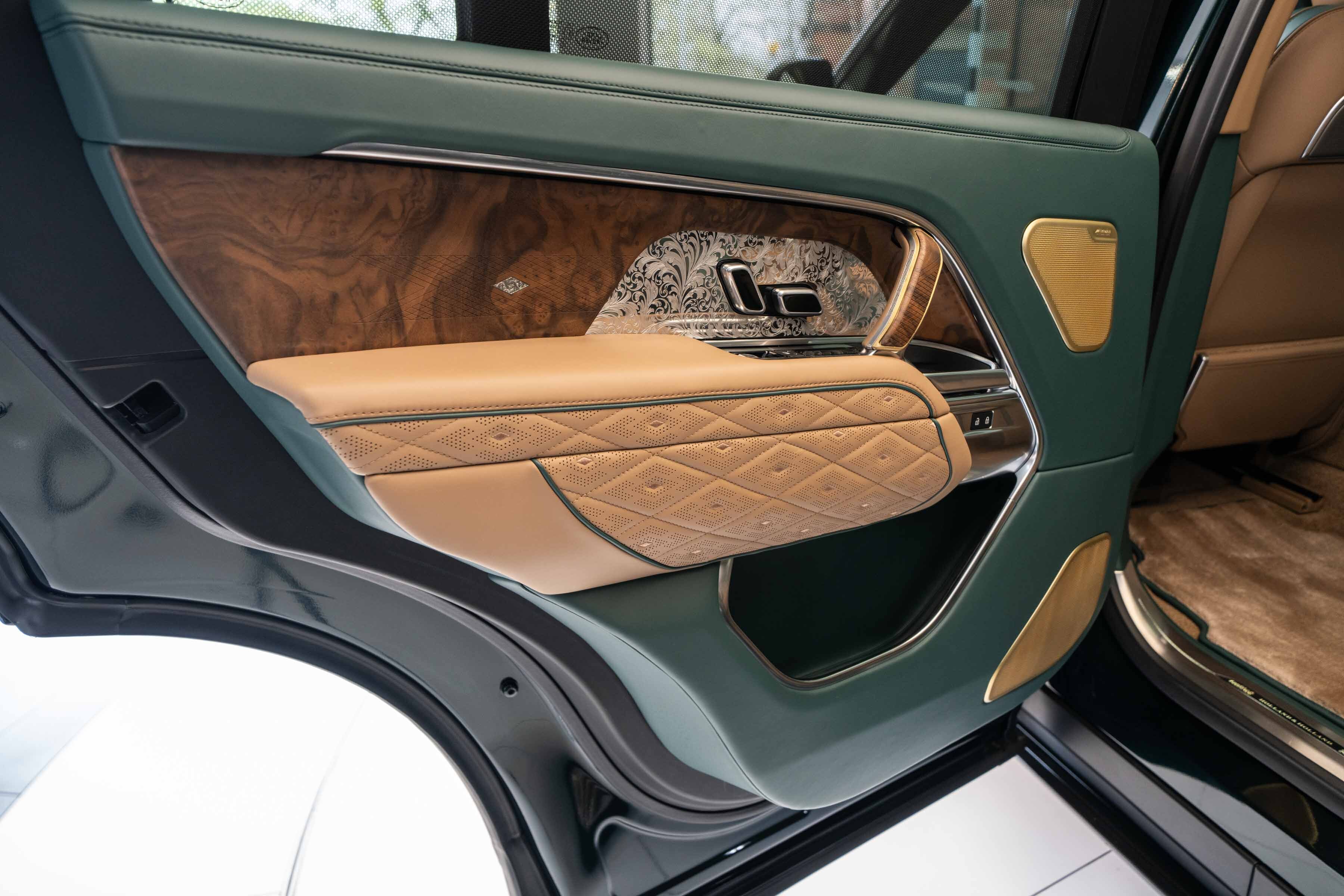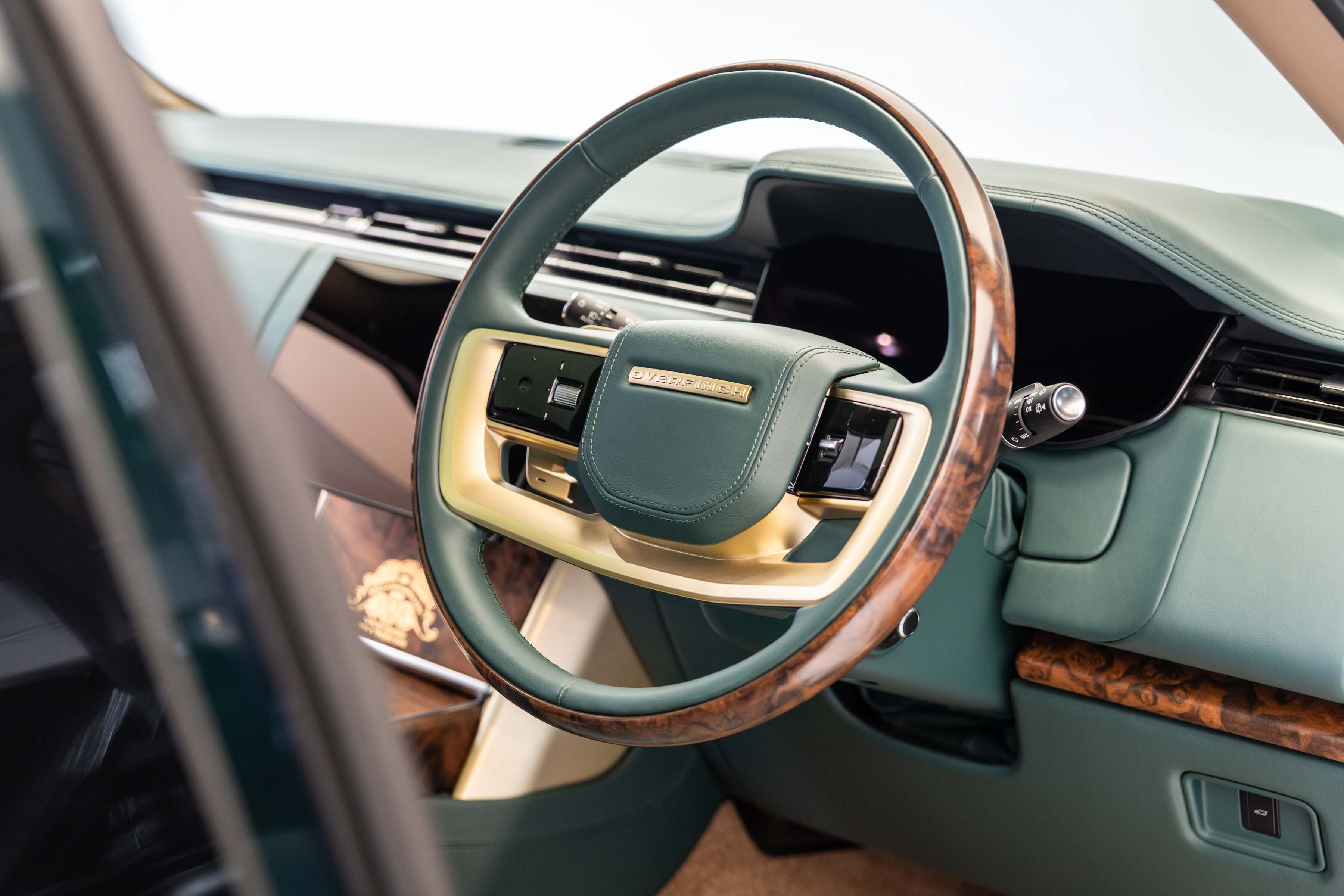 Holland & Holland’s insignia is elegantly placed on a machined dual finish grille; intricate louvres and decorative surround anchor a bold front profile complemented by Overfinch’s bespoke bonnet script lettering and a matching lower grille.