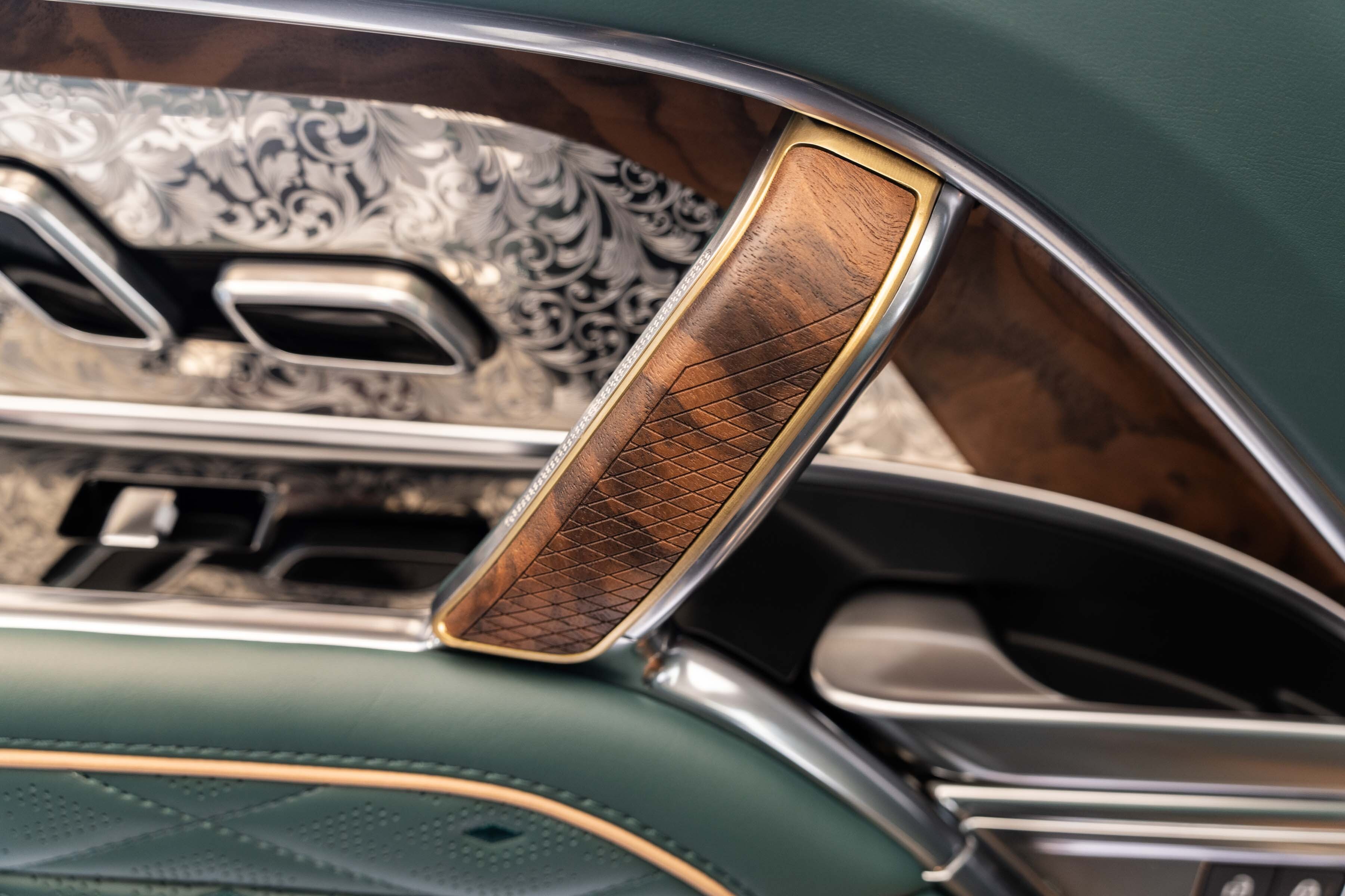 The vehicle’s interior is a masterclass in fine craftsmanship. The ‘Royal’ scroll elegantly unfurls across high-touch stainless steel elements, while open pore French walnut veneers provide organic beauty and a tactile reminder of the edition’s muse