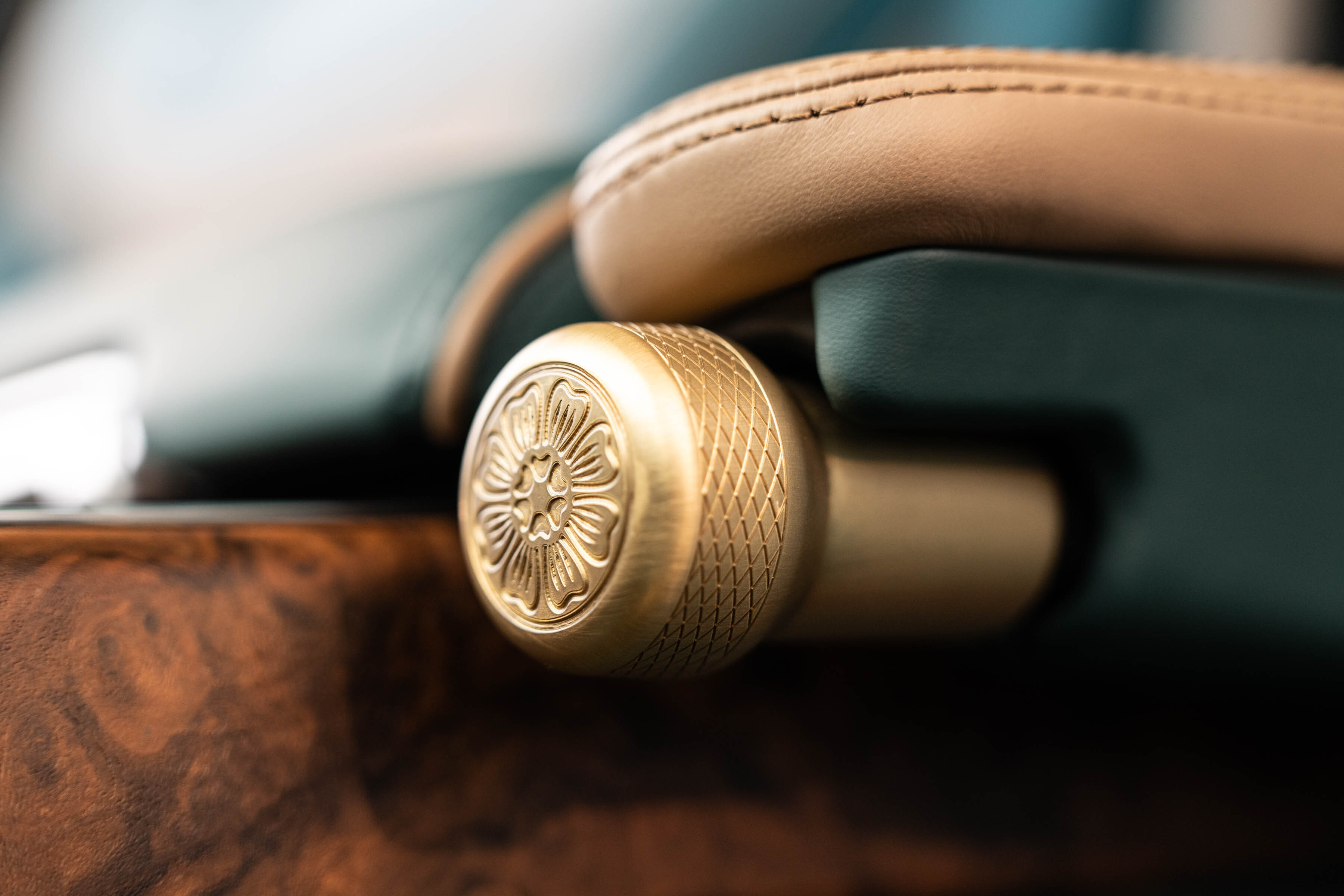 The driver’s experience is accentuated by a walnut veneer steering wheel, and a machined gear selector, topped with a hand finished wooden grip.
