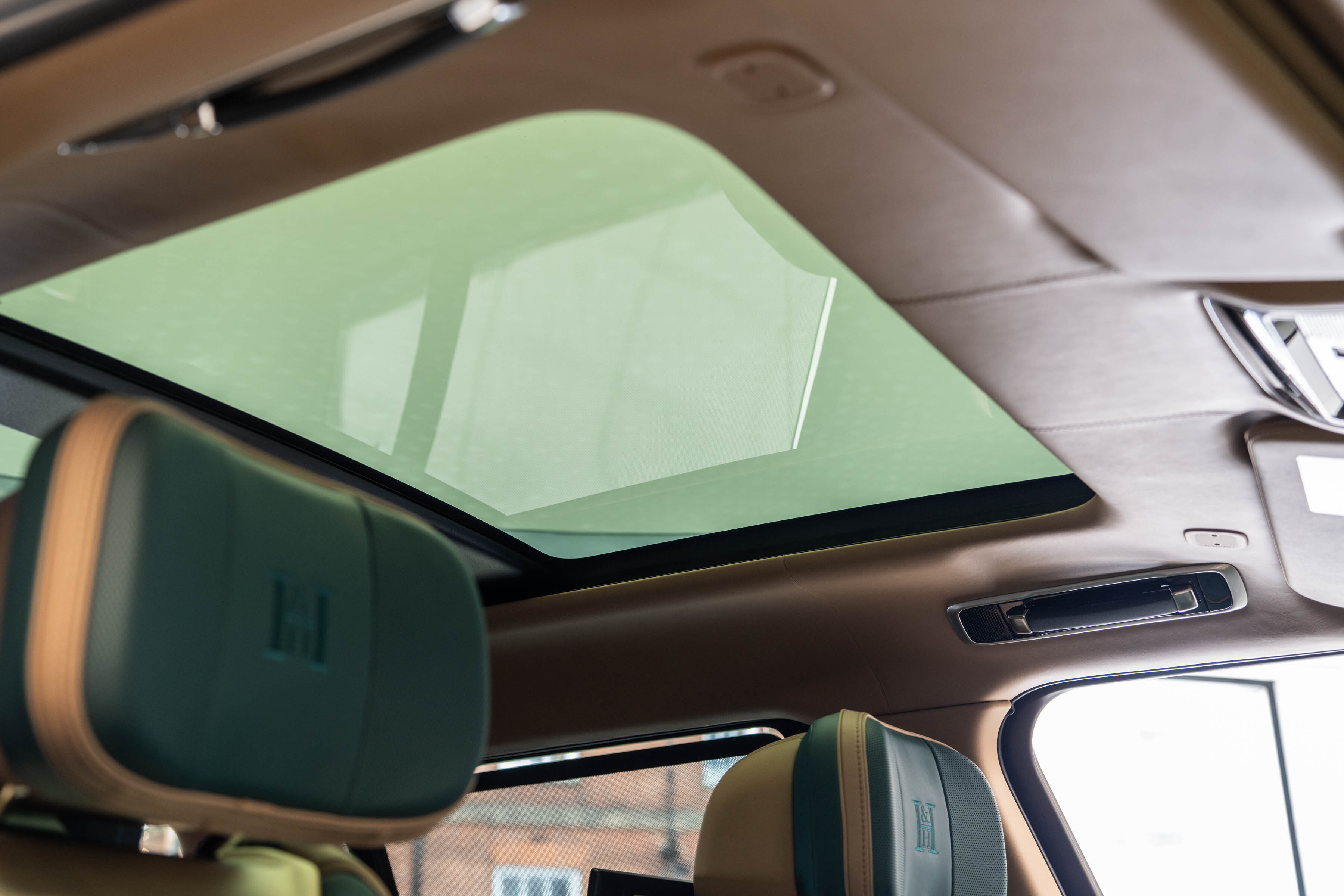 This particular example features Harris Green and London Tan, front-to-rear contrast colour split interior with Harris Green micropiping and stitching detail.