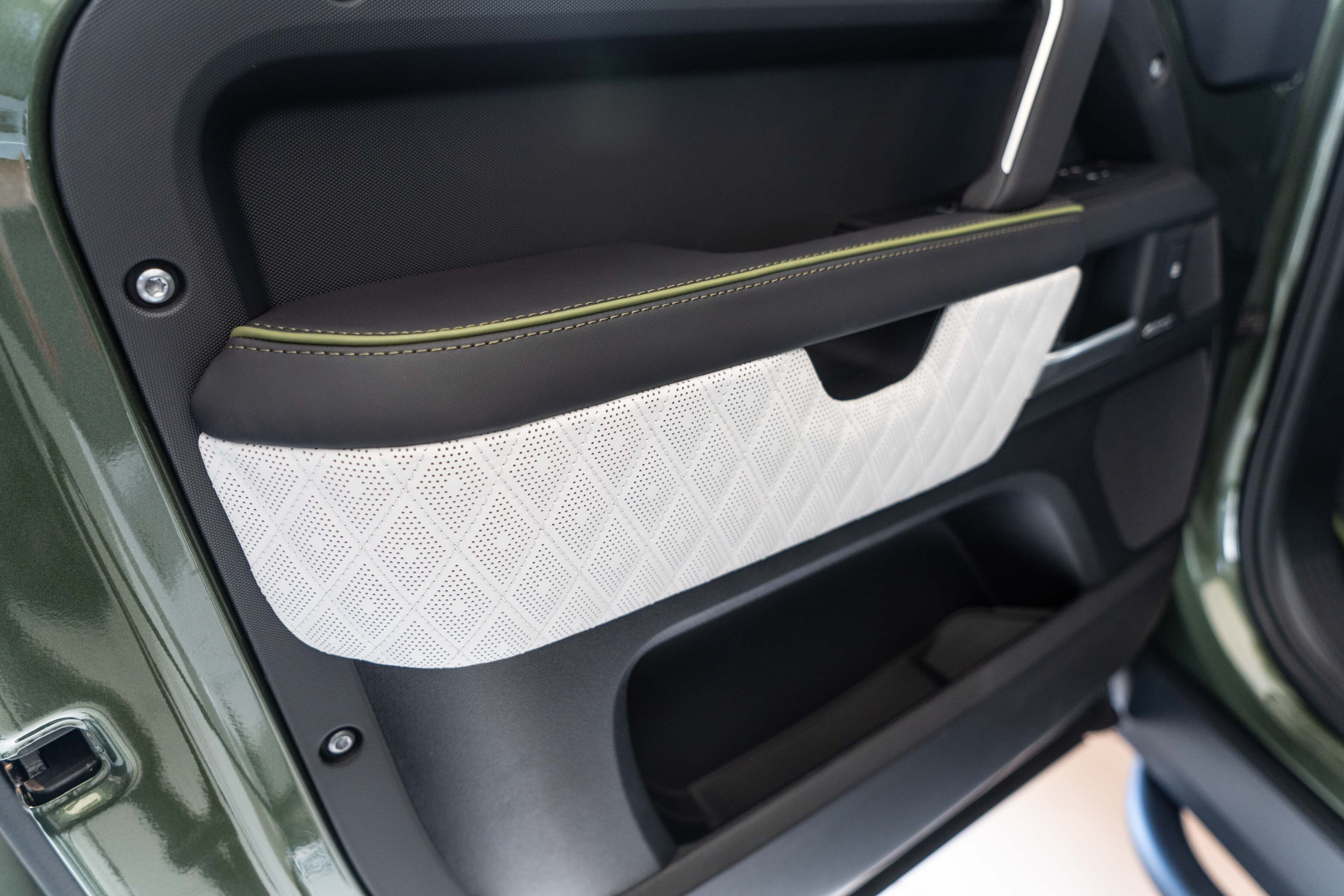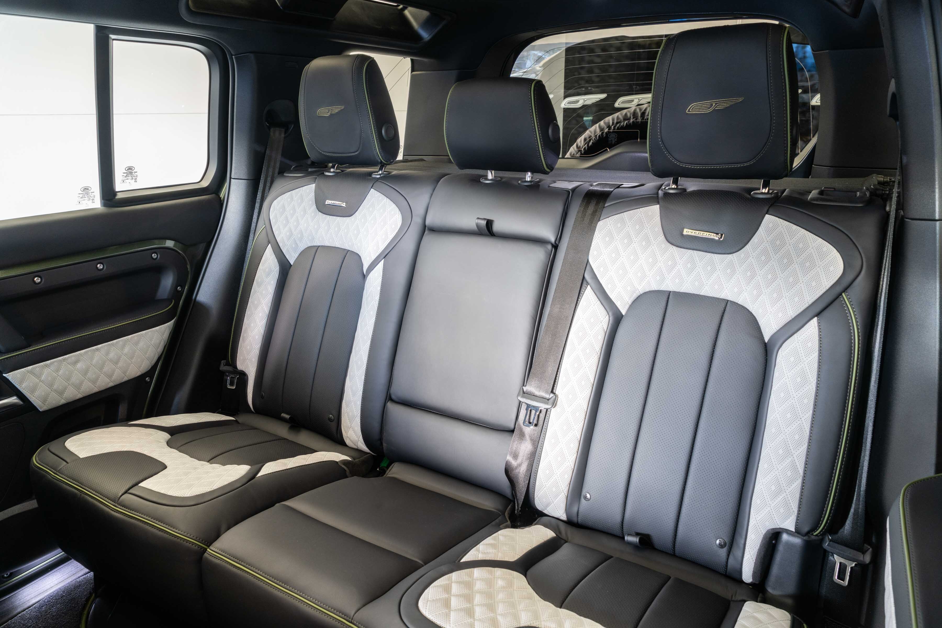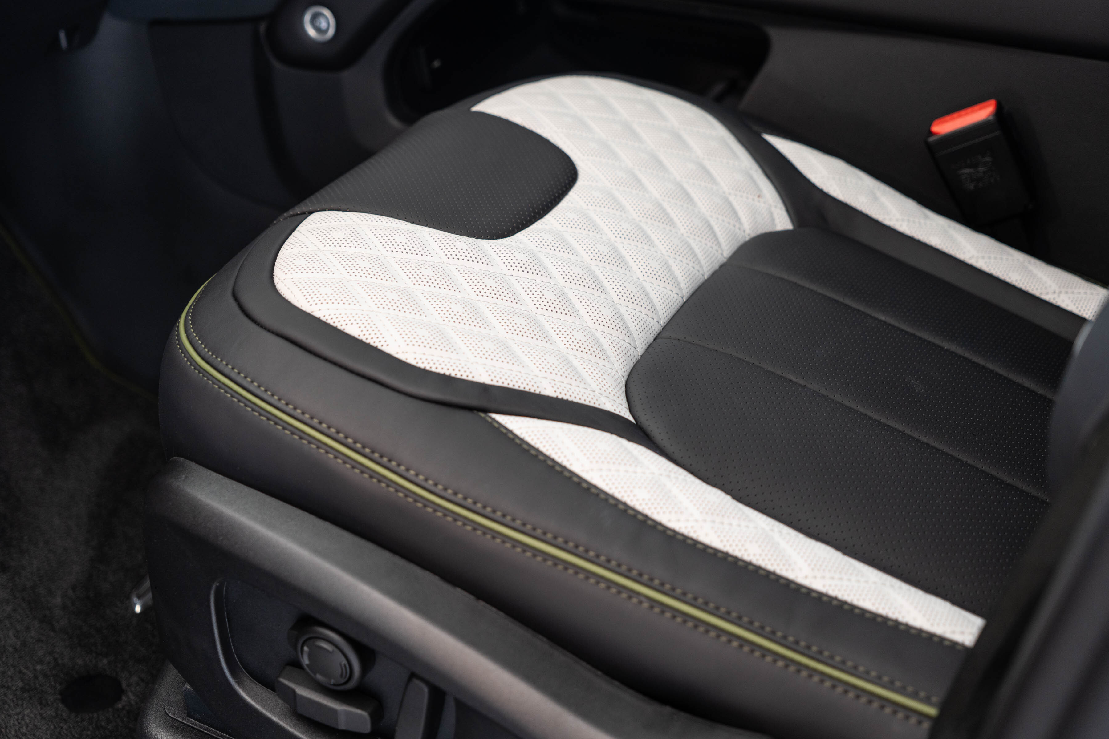 Overfinch Lumière Diamond Quilted Interior Trimmed in Ebony and Light Cloud Duo-Tone Premium Leather with Green Micropiping and Stitching