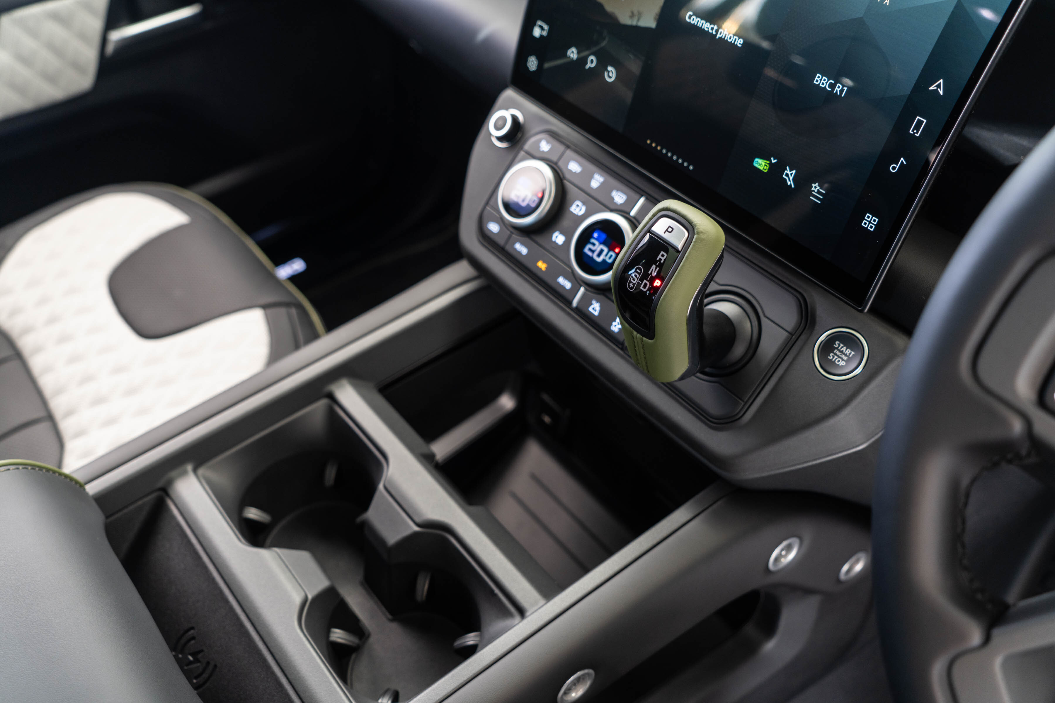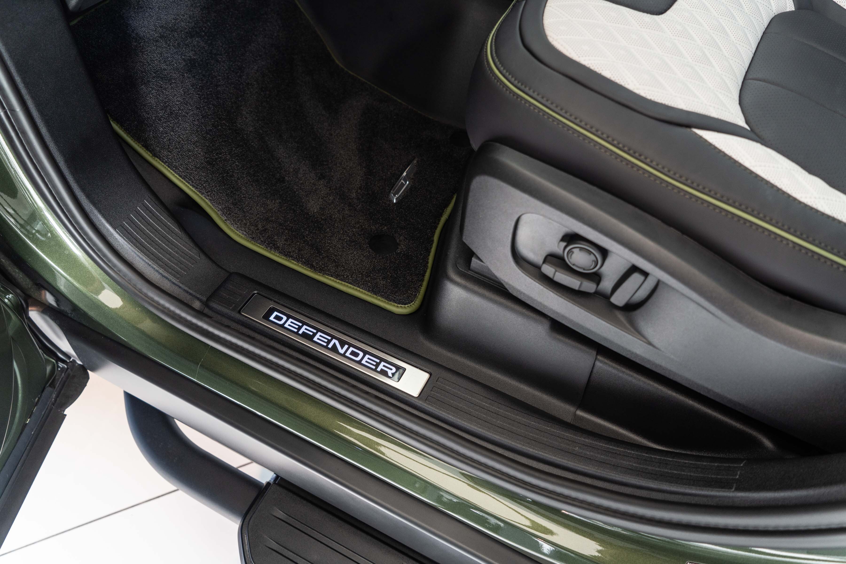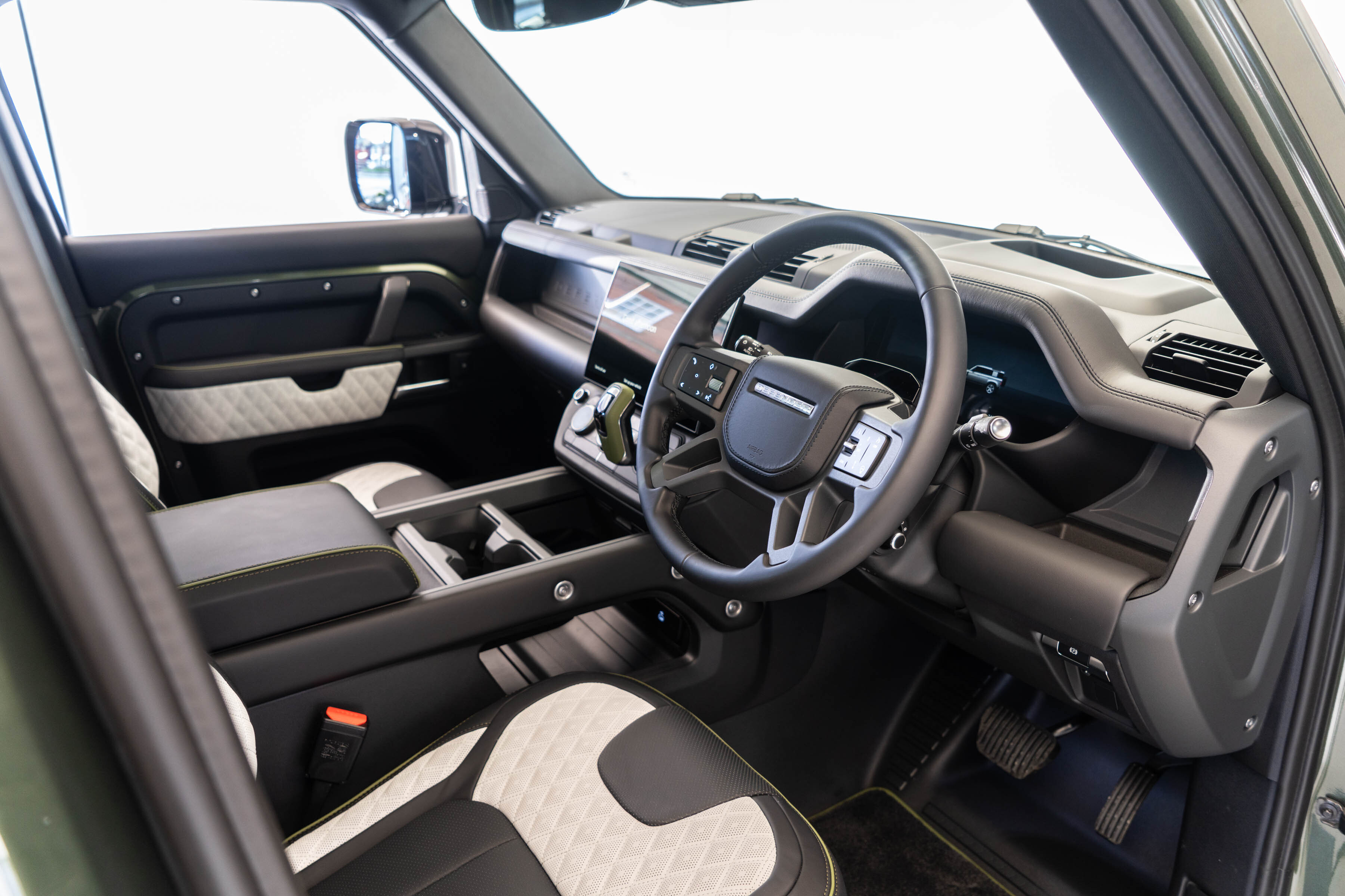 Overfinch Lumière Diamond Quilted Interior Trimmed in Ebony and Light Cloud Duo-Tone Premium Leather with Green Micropiping and Stitching