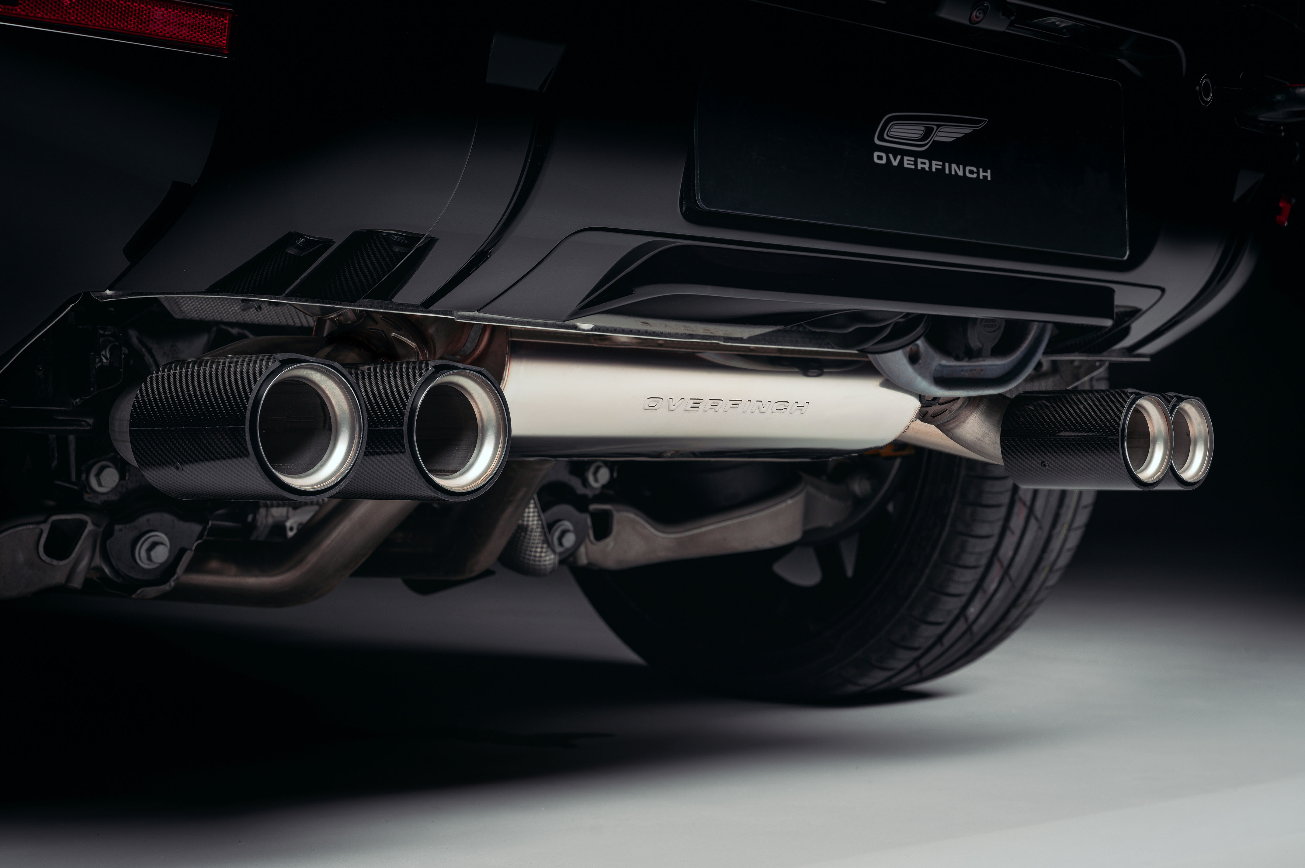 Engraved Overfinch stainless steel tips are encased in beautiful carbon fibre surrounds to give your vehicle an unmistakable presence. Embossed Overfinch script details the new exhaust back box for a subtle but welcome styling addition.