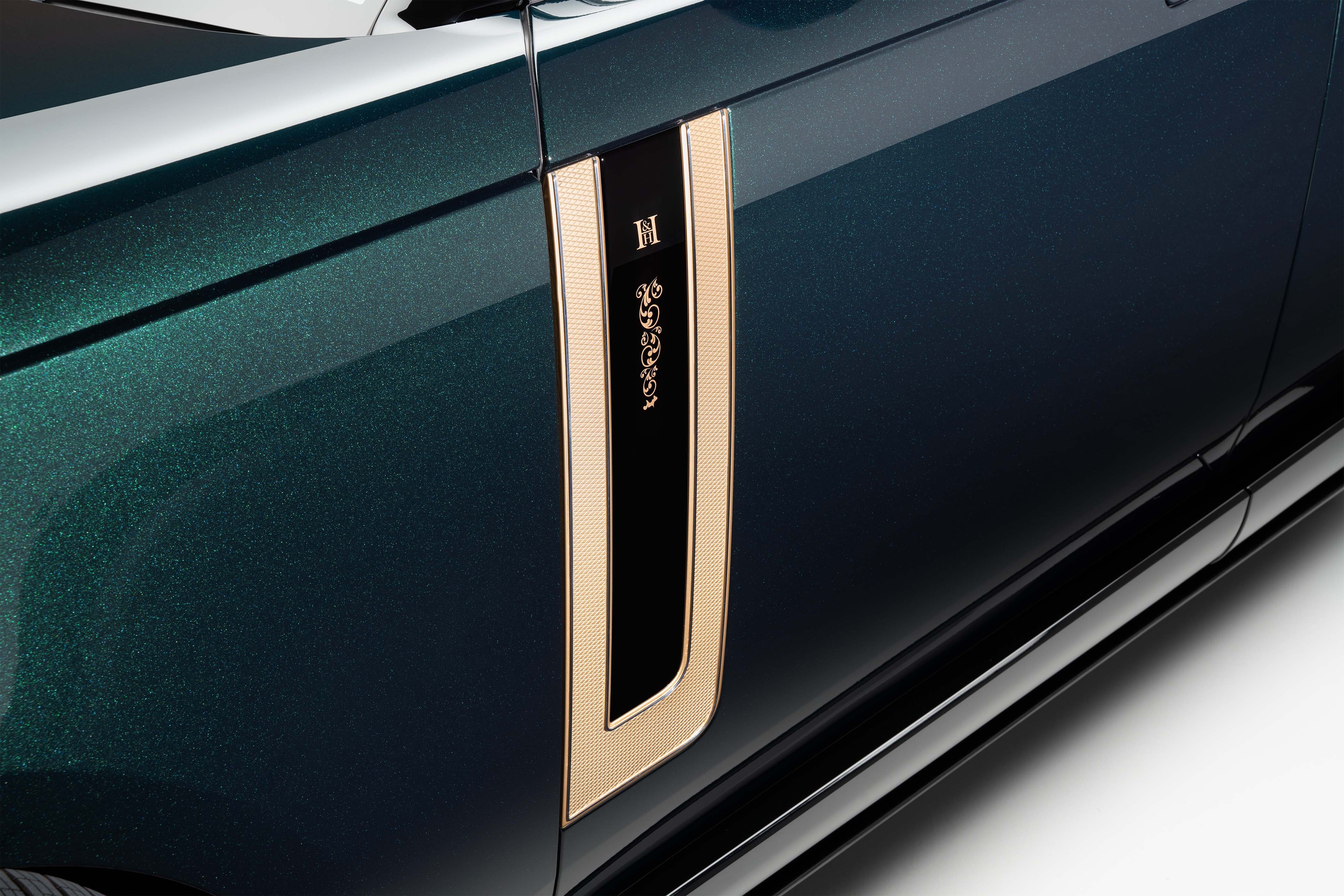 The door casings are perhaps the most beautiful of any modern automotive interior. Walnut inserts with hand engraved forend diamonds, redolent of Holland & Holland’s shotguns’ stocks, are presented alongside a stainless-steel plaque showcasing further ‘Royal’ scroll.